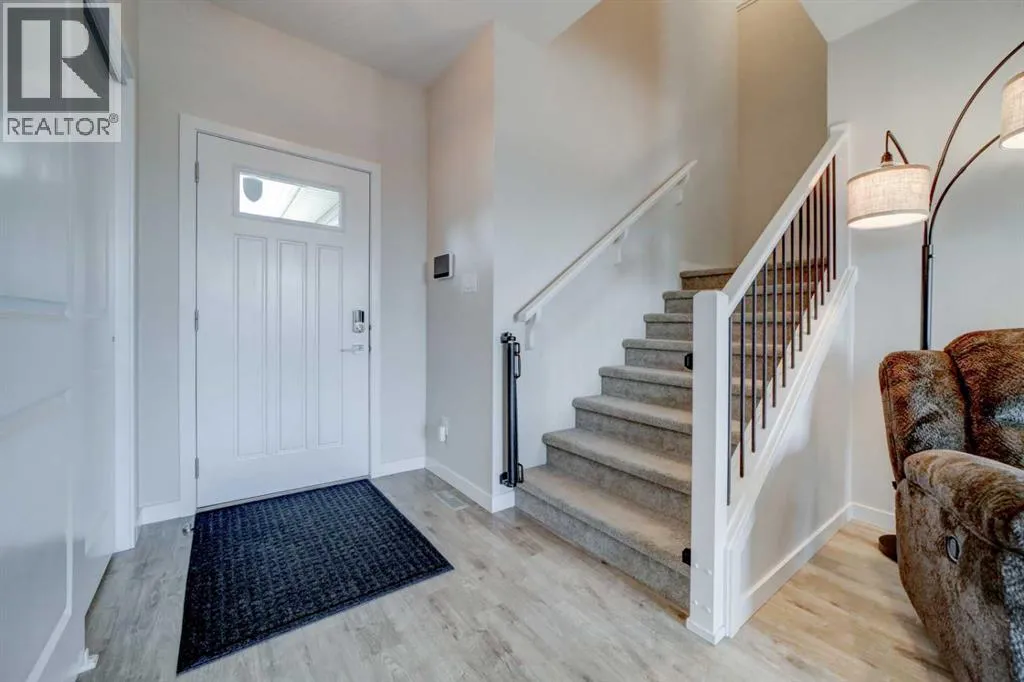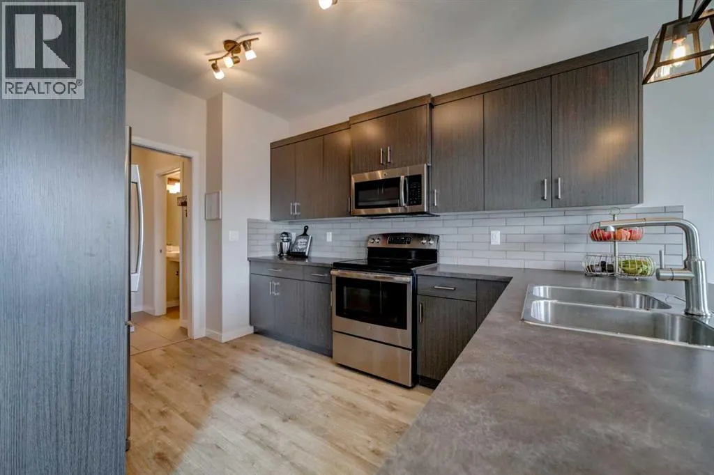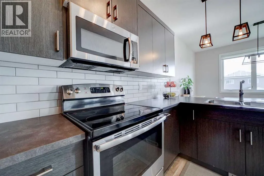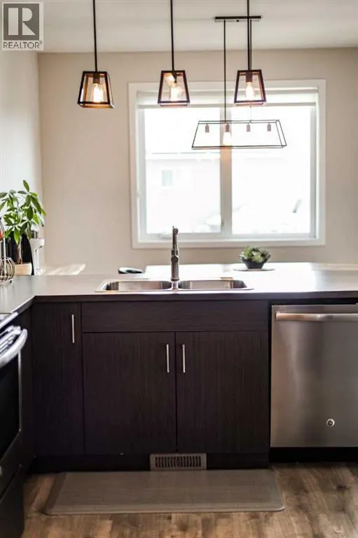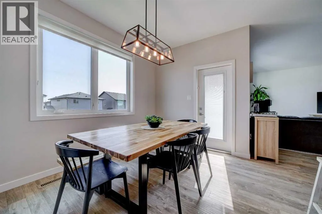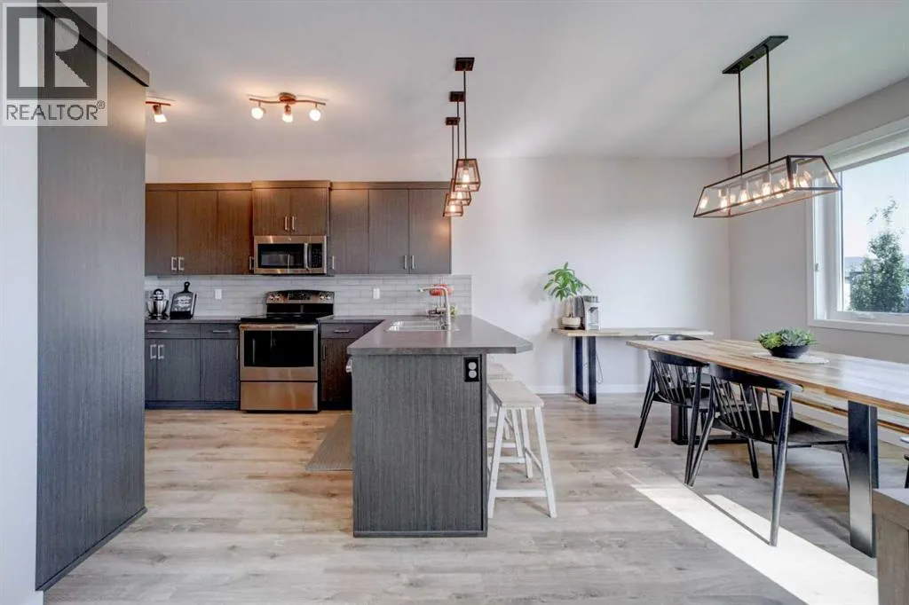 Welcome to 563 Moonlight Lane, a modern home in the thriving community of West Lethbridge. The main floor is open and filled with natural light, thanks to extra-large windows that make the living room, dining area, and kitchen feel bright and inviting. The spaces flow effortlessly, allowing you to cook, visit, and stay connected with everyone at the same time. The kitchen combines style and function with rich cabinetry, a tile backsplash, and wood-grain flooring, adding a warm, welcoming touch.Upstairs, the primary suite is a cozy retreat with its own three-piece ensuite, while two additional bedrooms, a full bath, and laundry area keep everyday family life practical and convenient. The walkout basement is a bright blank canvas ready to be customized, opening onto a covered patio and a spacious backyard with alley access.Additional features include central air conditioning for year-round comfort and convenience of a gas line already plumbed into the garage, should you decide to add a heater.This home is spotless, move-in ready, and still feels like new. Best of all, itâs located in one of the most family-friendly neighborhoods in Lethbridge, just steps from a green space, playground, and excellent schools. Itâs the kind of community youâll be happy to come home to. (id:27476)