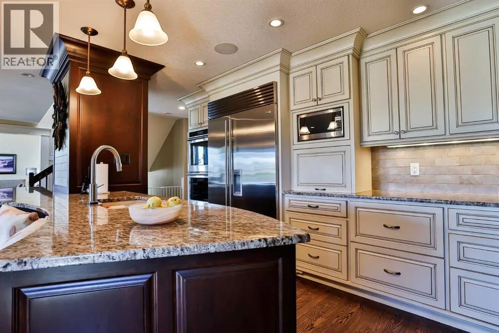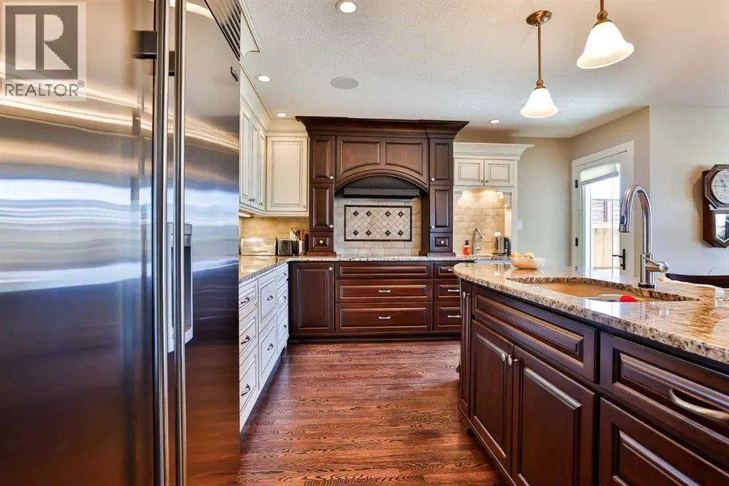 Welcome to one of the most desirable postal codes in Lethbridge, checkout this one owner custom built executive home backing on to the coulee with one of the very few views of Lethbridge's iconic train bridge spanning The Old Man river. This incredible property suggests eloquence from the moment you drive up to it. Nestled on the west side of Lethbridge in the very sought after Ridgewood sub division, this home offers a triple heated garage and when you step in the front door you just know that you are home. Every detail of this home is upgraded, from the formal family and dining room, to the chefs kitchen, including a Sub-Zero fridge, 36" Miele induction cooktop, wine fridge and much more with a massive granite island and over abundance of cabinetry, every room has a view. The pantry is second to none with custom storage for everything you can imagine. Upstairs features a dream primary bedroom , massive ensuite with views that never end, two more large bedrooms and a four piece bathroom. Down stairs there is a large cozy family room, spare bedroom, bathroom, cold room and storage/ furnace room. When you finally get done viewing this expansive home you can go outside to an incredible outdoor living space that rivals most professional gardens. Call your favourite Realtor to view. (id:27476)