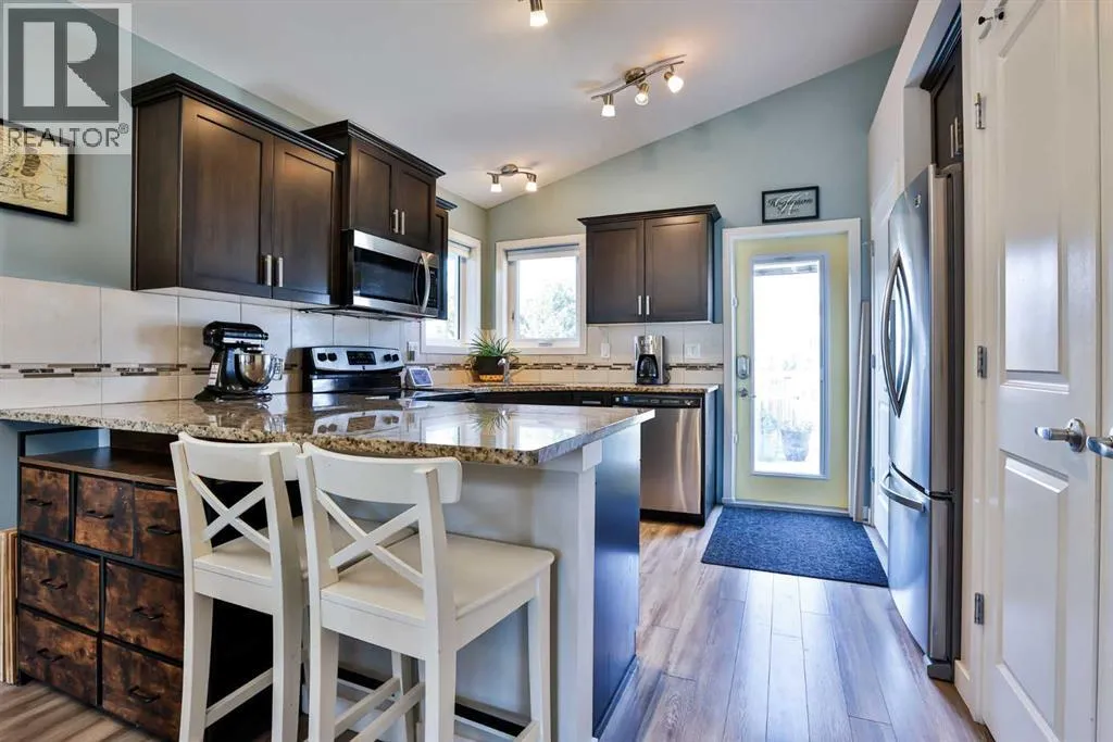 Charming Bi-Level in Copperwood with Heated Garage, Upgrades & Family-Friendly Location!Welcome to this inviting 4-bedroom, 3-bathroom bi-level in the sought-after community of Copperwood on Lethbridgeâs west side. Built in 2014 and offering approximately 1,000 sq ft on the main floor, this home combines comfort, functionality, and thoughtful upgrades throughout.The bright, open layout features granite countertops in the kitchen and bathrooms, stainless steel appliances, a larger pantry, and modern finishes that elevate the space. Plumbed for a fireplace, the living area is ready for cozy evenings in.The primary suite includes a 3-piece ensuite, while a 4-piece main bath serves the upper floor. The fully finished basement adds even more living space with a 3-piece bathroom.Outside, enjoy a 21x21 heated double detached garage, a fully fenced yard with a charming playhouse, and a nearby park. Families will love the convenience of being within walking distance to schools, making daily routines a breeze.Stay cool all summer with central A/C and enjoy a home thatâs been well cared for with stylish, practical touches throughout.Donât miss your chance to own in one of West Lethbridgeâs most desirable neighbourhoods. Book your private showing today! (id:27476)