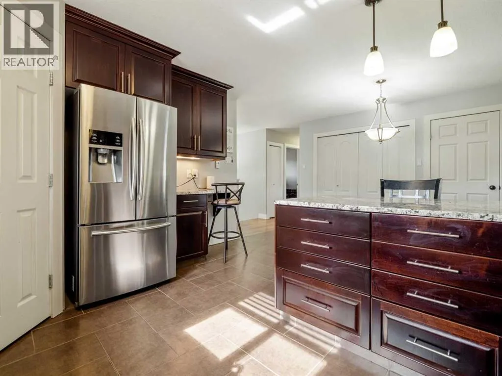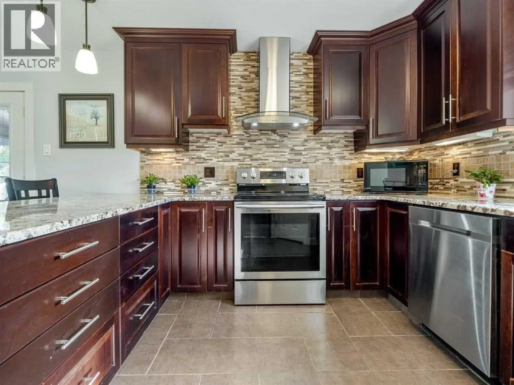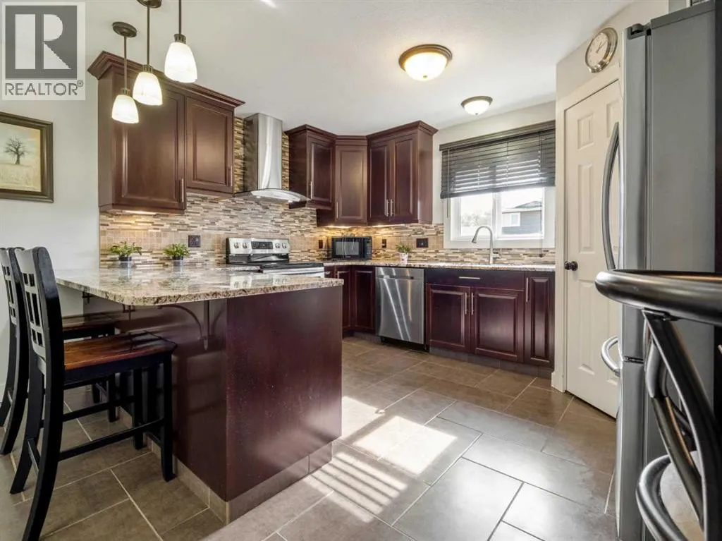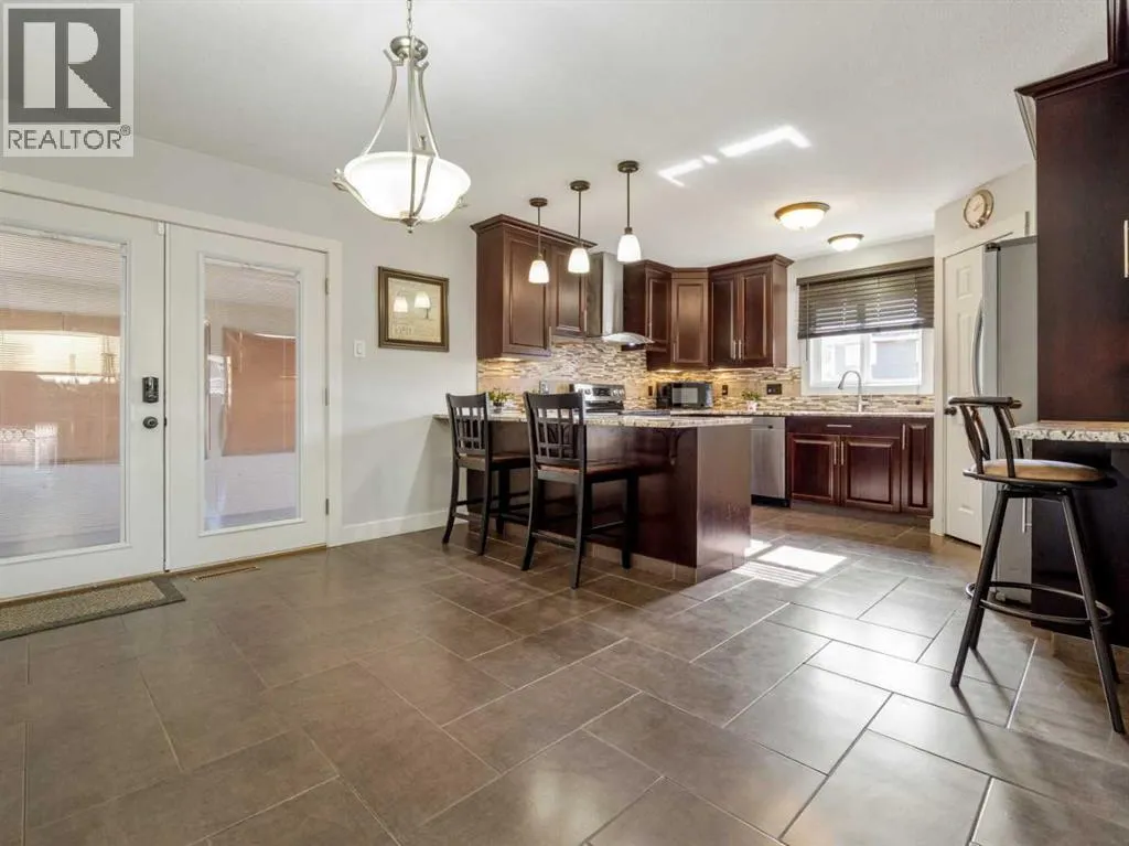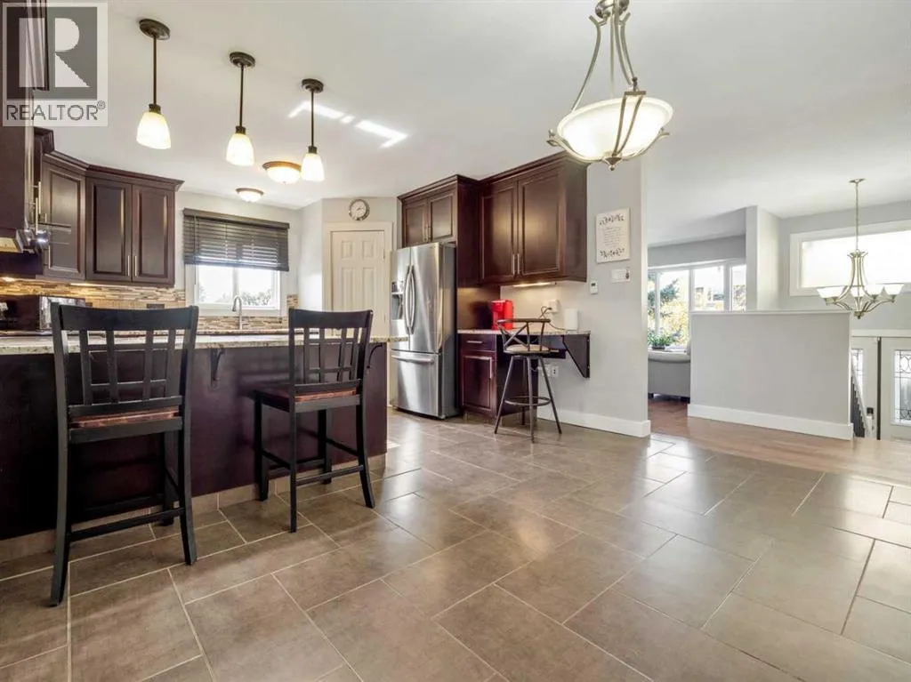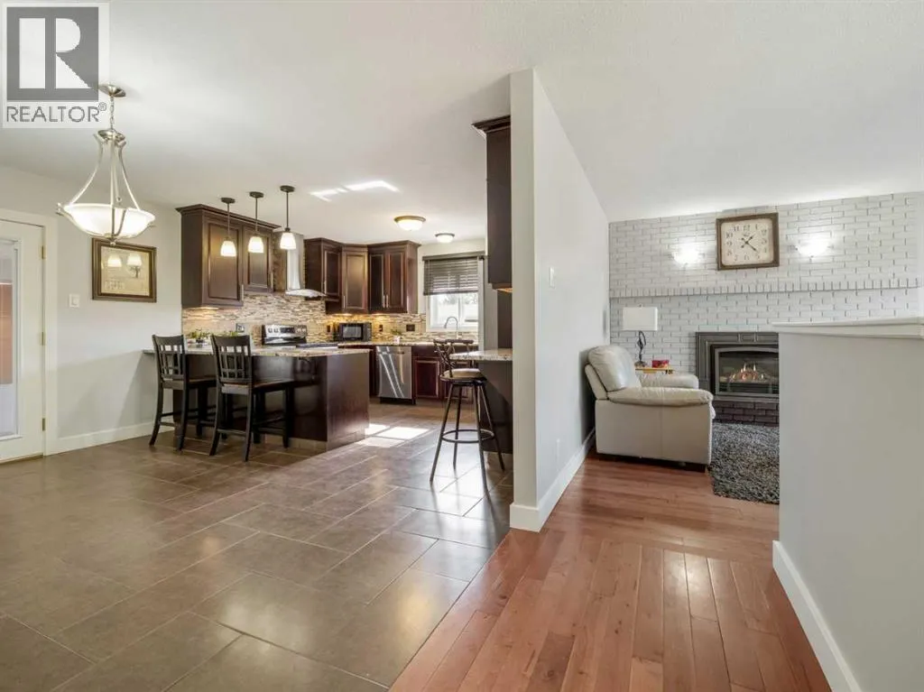 Opportunity Knocks! Nicely updated bi-level home with 6 bedrooms and 2.5 bathrooms. Home features an illegal basement suite with separate rear entrance and TWO DOUBLE GARAGES! Many updates to the home have been done by this owner. These include 2 furnaces replaced in 2018, a 60 gallon hot water tank installed in 2022, vinyl plank flooring in basement in September 2025, a brand new front door assembly that will be installed this month, New Torch on roof for the house and attached garage in 2017, new vinyl windows throughout(bow window and basement in 2017, rest in 2019). All appliances new in 2019 except for dishwasher and stove in basement kitchen, 2 new gas fireplaces added in 2017. Paint done as well in many rooms. Main floor has welcoming plan. Bright living room with beautiful bow window and fireplace with brick feature wall. Dining room is a good size with garden doors to sunroom/enclosed deck). There is also a laundry closet just off the dining room. Kitchen is well appointed with tile floors that feature in-floor heat! You'll also enjoy aranite counters, stainless steel appliances, and corner pantry. Hardwood floors for living room, hallway, kitchen, and bedrooms on main. Primary bedroom has double closets and a 2 piece ensuite. There are 2 more bedrooms on the main and a full bathroom with soaker tub. Basement is fully developed with vinyl plank flooring in main areas, and carpet in bedrooms. Family room has a gas fireplace. Enjoy the full size basement kitchen with island. There is also a laundry room in the basement and a forced walk-out entry to rear of home. There is also access to the attached garage(28x24) from the basement. Basement also features 3 bedrooms and a full bathroom. Backyard on south end of home features deck and pergola with HOT TUB. North backyard is a good size and features a nice size grass space for kids to play or pets to roam. North end of property faces alley and features a second double detached heated garage(22x22) that has a 10 foot high garage door facing the alley. Home has conveniences of central vac, central a/c to upper level, and underground sprinklers. Make this home yours today! (id:27476)