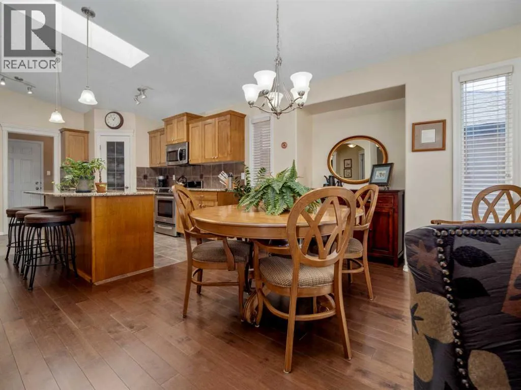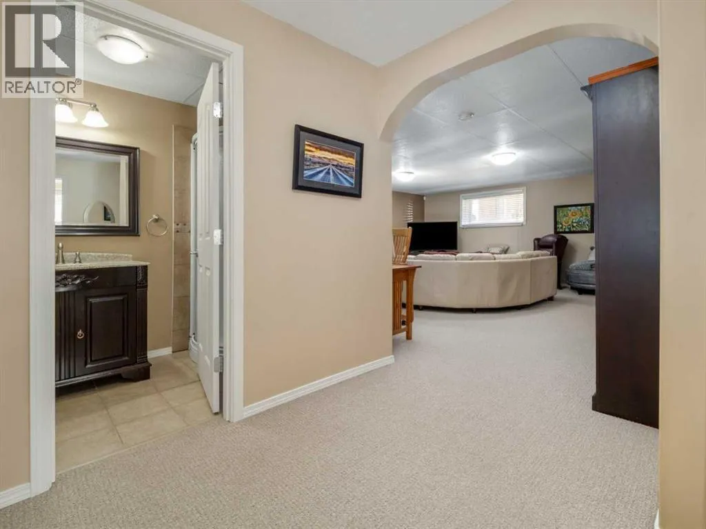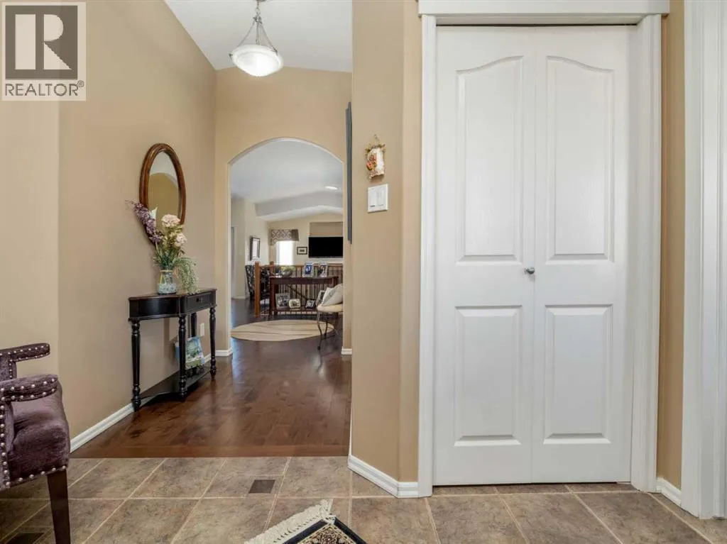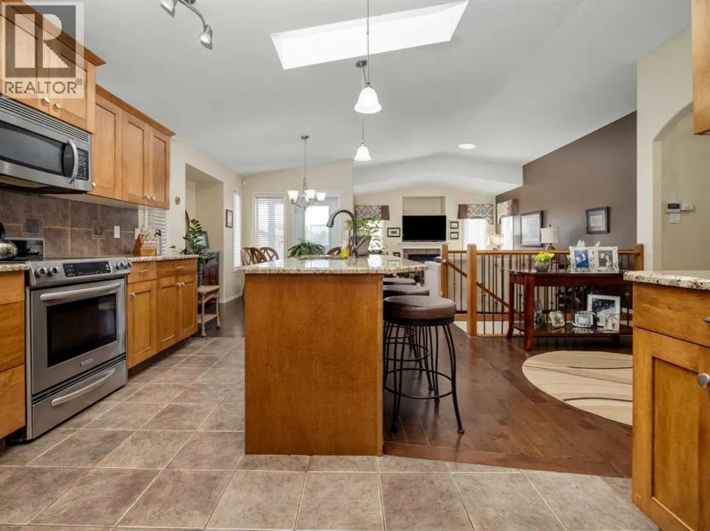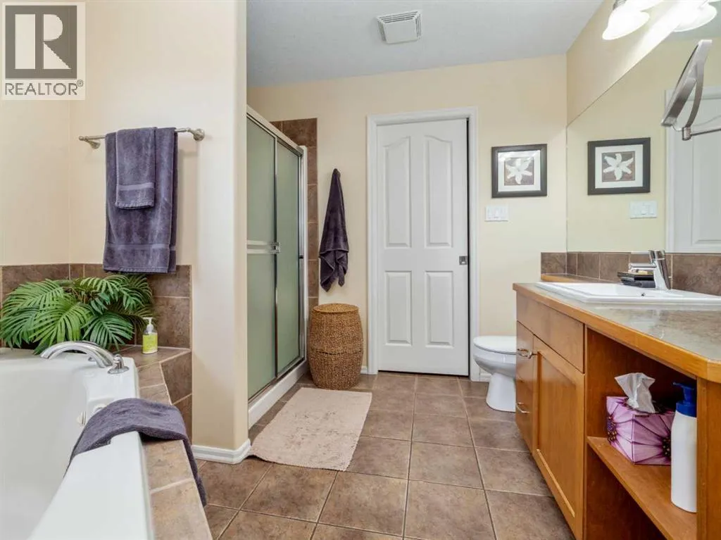 Welcome to this stunning, and well-maintained bungalow, perfectly situated in one of Lethbridgeâs most desirable Southside neighborhoods. Just a short stroll from two peaceful lakes and minutes away from shopping, this home offers the perfect blend of comfort, convenience, and lifestyle.Step inside and be greeted by an inviting open concept layout, filled with natural light. The cozy gas fireplace in the living room sets the tone for relaxed evenings, while the thoughtfully designed kitchen with pull out drawers in the cabinets makes cooking and entertaining a breeze. The convenient main floor laundry adds everyday ease, and the spacious primary bedroom features a true retreat of a 4 piece ensuite with a walk in closet, perfect for unwinding at the end of the day.The fully developed basement offers even more space, with three additional bedrooms, a large family room ideal for movie nights or relaxing evenings, and a bathroom with in-floor heating for that extra touch of comfort.Outside, enjoy the convenience of underground sprinklers and a 25x23 ft attached, insulated, and finished garage, providing plenty of room for vehicles, storage, or hobbies.Notable upgrades include a roof (8 years), central vacuum (4 years), and A/C (2 years). The hot water on demand system ensures efficiency and comfort year-round.Located in a quiet, established neighborhood, this home offers the lifestyle youâve been looking for with lakes, walking paths, and amenities just steps away. If you'd like to view this home please give us a call or reach out to your REALTOR® today. (id:27476)