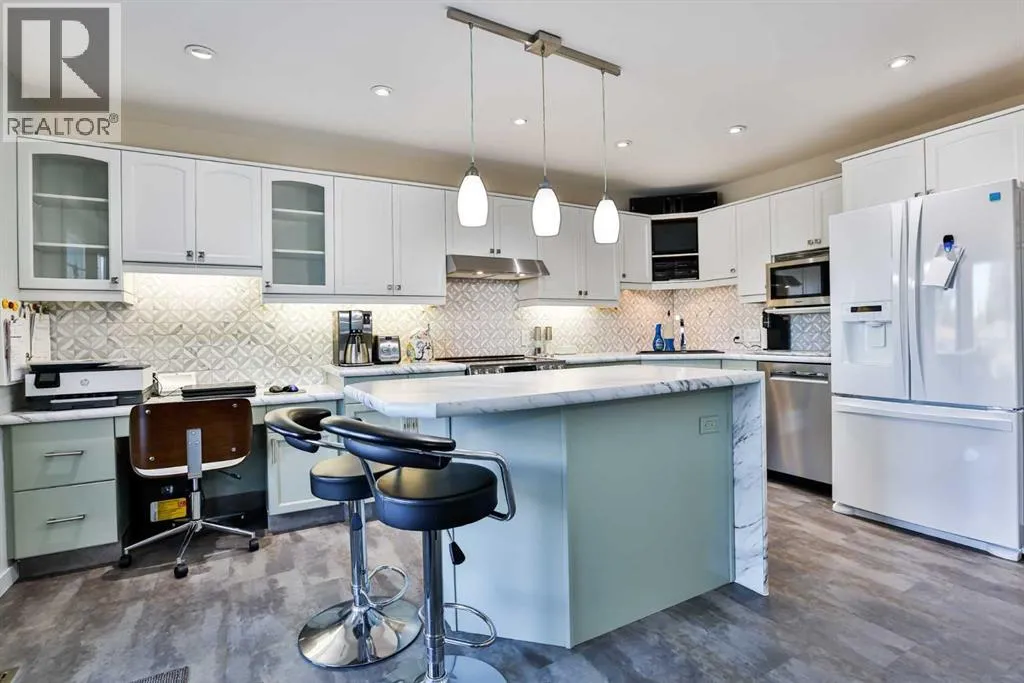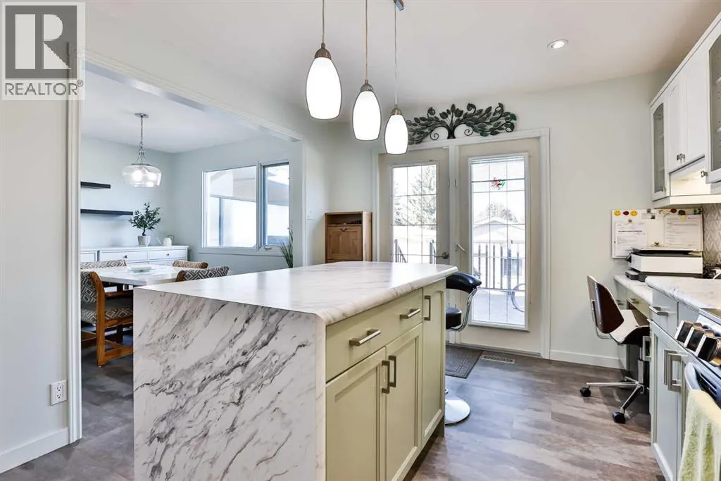 Step into refined living with this beautifully updated and truly move-in ready townhouse, where modern design and quality craftsmanship come together seamlessly. Over the past few years, nearly every major component has been upgraded â including an asphalt-bonded roof on the home, 50-year shingles on the garage, new PVC windows, modern doors, décor light switches, flooring, fresh paint, and stunning bathroom renovations. The kitchen is a showpiece, featuring upgraded cabinetry, countertops, fixtures, and backsplash, all thoughtfully designed for both function and style. It opens to a formal dining area and flows effortlessly to a spacious 12' x 20' Duradeck-covered back deck, complete with two enclosed storage spaces beneath. From here, enjoy a peaceful view of your private yard and a peekaboo view of the park beyond. The upper level offers an open, light-filled floorplan with a contemporary half bath, while the lower level provides two inviting bedrooms and a fully renovated full bath showcasing sleek, modern finishes. With approximately 1,250 sq. ft. of total living space, this home feels bright, open, and elegant throughout, in spite of its relatively small footprint. Out back, the super-single heated and finished garage with paved lane access offers excellent storage, workshop space, and parking for one. Best of all, there are no condo fees or bylawsâjust the freedom of homeownership with your own yard to enjoy. Located steps from a serene park that enhances privacy and adds to the sense of space, this exceptional townhouse is the perfect blend of style, comfort, and convenience. Quick possession is availableâcome experience this gem for yourself today. (id:27476)