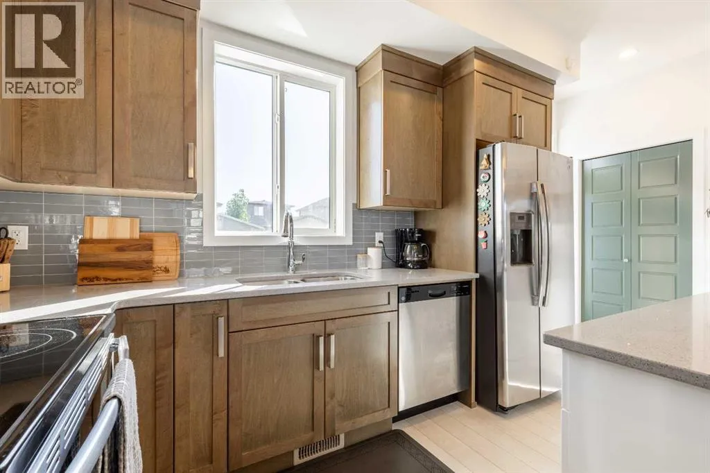 A gorgeous, fully finished 2 storey home that is nothing short of turn-key. This 4 bed, 3.5 bath home offers families a great place to start their real estate journey. With a double front parking pad, newly re-landscaped and graded, fully fenced yard and with alley access this is a dreamy combo! The main floor is bright, welcoming and offers modern finishes with a cozy feel. A custom fireplace with shiplap mantle, dining space that fits the whole family, quartz kitchen with island for food prep and warm cabinetry tie this entertaining space together. There's a half bathroom on the main floor and access to the back deck! Heading upstairs, there's a skylight in the stairwell, bringing in a ton of natural light. 3 bedrooms up, a 4 piece shared bathroom and 3 piece en-suite! The basement hosts a family room, storage space, 3 piece bathroom with soaker tub, fourth bedroom and laundry! This home is only a few short blocks from parks, playgrounds, lakes and the Legacy Regional Park. A perfect place to raise a family, enjoy peaceful evenings at home and explore all the neighbourhood has to offer! (id:27476)