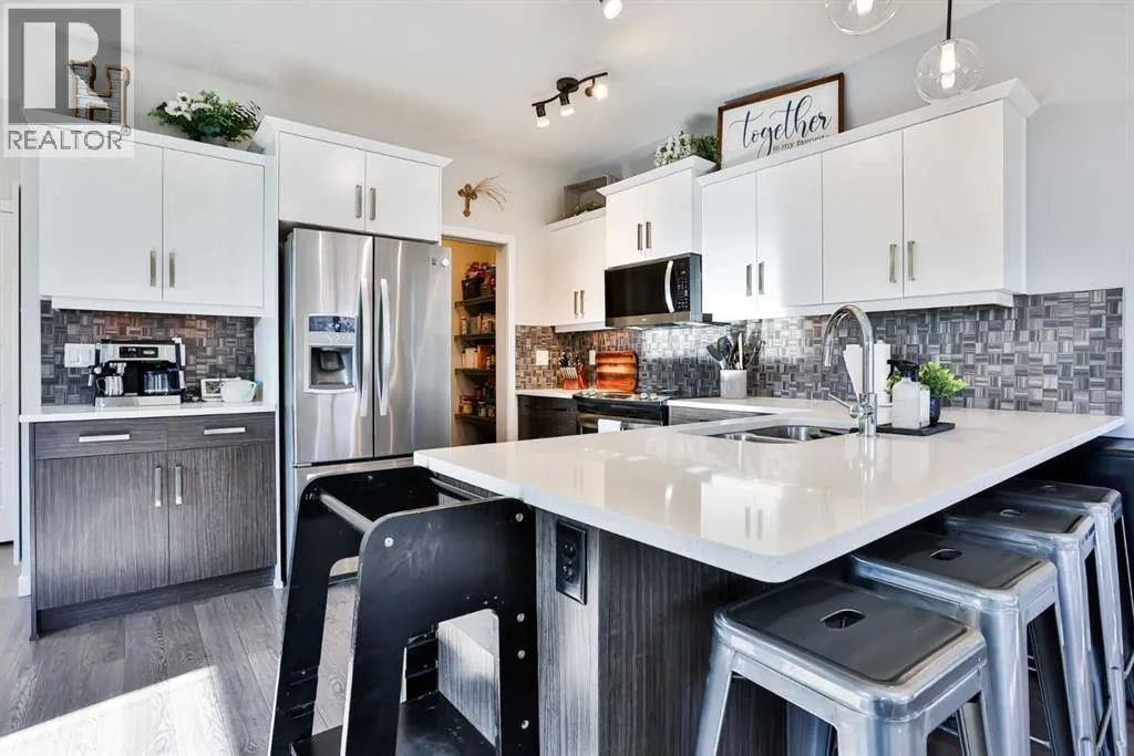 Welcome to 128 Cabot Landing West. This Galko built beauty was a former showhome, so you know that all of the bells and whistles have been included, and then some! This stunning 2 story home has 1777 sq ft of space, has a bright open concept main floor, with a spacious kitchen, walk thru pantry, living room with fireplace, and a conveniently located 2 piece bath for your guests. Up the stairs you will find a bonus room with ample space and an abundance of natural light. A few more steps up to the primary suite with walk in closet and ensuite bath along with 2 more bedrooms and a 4 piece bath. The basement has a 4th bedroom, family room and another 4 piece bath. Step through your patio doors off the living room and your back yard oasis awaits. The oversized rear deck has a gas outlet for your BBQ, and leads down to a paving stone patio, with fully fenced yard that adds security for your kids and pets. The underground sprinklers are installed front and back, and the double attached garage is heated for even more comfort. Close to parks and playgrounds, and 2 future elementary schools, its move in ready, and the large corner lot affords additional parking. The recently installed solar panels are the cherry on top of this already perfect property! Come have a look and start your new chapter here. (id:27476)