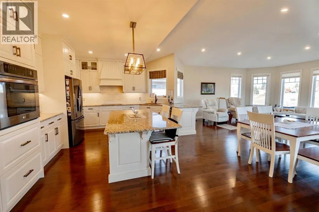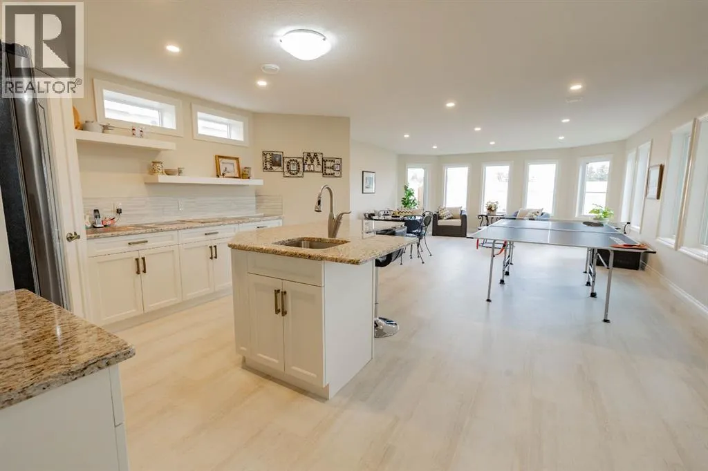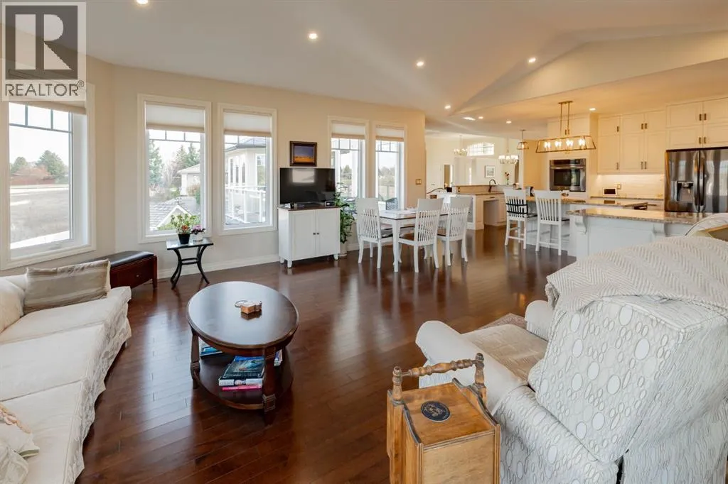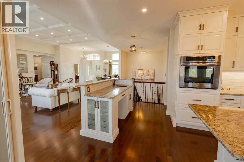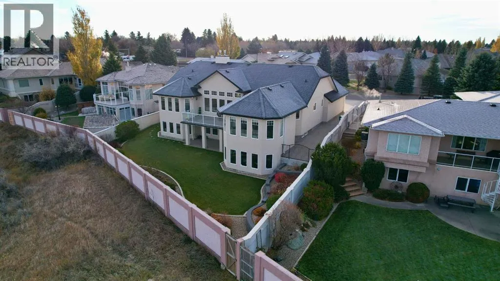Discover refined living in this exceptional executive bungalow, perfectly situated in the sought-after Chinook Heights neighbourhood. Thoughtfully designed with exquisite finishes and generous spaces throughout, this home blends comfort, elegance, and functionality. The open-concept main floor is ideal for entertaining, featuring a custom chefâs kitchen with an island workspace, wet bar, breakfast room and formal dining area. The Kitchen is a custom Adora build with matching granite countertops throughout the home. Soaring coffered ceilings and impressive fireplaces create a warm, welcoming atmosphere, while oversized windows showcase stunning views of the coulees and walking paths. The blinds are all custom to the home and an additional luxury touch is that all the north facing windows are Triple Pane! No drafts and very nice for keeping it cozy inside. Speaking of cozy: the home features 4 area heating throughout! Set your desired temperature in each space and only heat what you need. Both the upstairs and downstairs living rooms feature a gorgeous gas fireplace for added ambiance and comfort. The fully developed walk-out basement includes a summer kitchen â offering flexibility for multi-generational living, guest accommodations, or caregiver support for aging in place. Each bedroom downstairs has their own full bathroom! Additional features include Maple Hardwood flooring, in-floor heating, a double attached garage with a spacious driveway and beautiful landscaping that complements the serene surroundings. Every detail has been carefully considered in this one-of-a-kind property, a true opportunity to enjoy executive living with the beauty of Lethbridge right outside your door. (id:27476)
