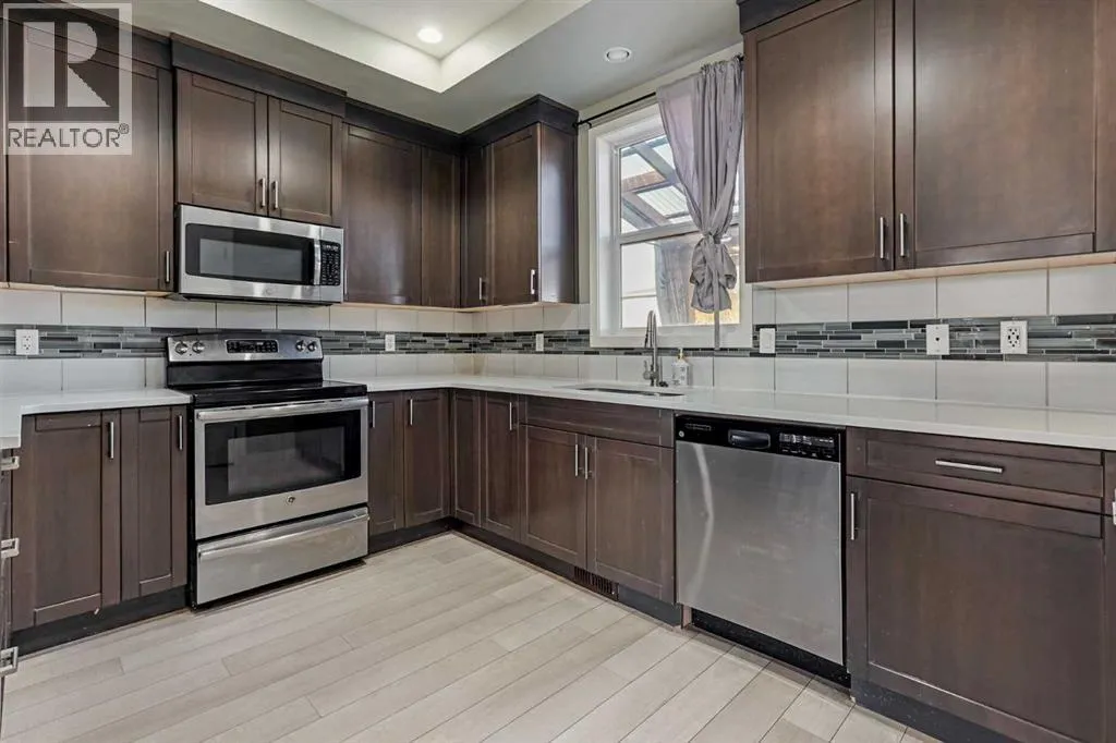 Step into refined comfort with this spacious 5-bedroom, 3.5-bathroom home nestled in the sought-after Blackwolf community. The main floor boasts an open-concept layout, seamlessly connecting the living space to a formal dining area via a stylish half wallâperfect for entertaining. The kitchen is a chefâs dream, featuring ample cabinetry and workspace.Upstairs, the expansive primary suite offers a tranquil retreat with a 4-piece ensuite and a generous walk-in closet. Each additional bedroom is thoughtfully designed to provide comfort and flexibility for growing families or guests.Enjoy year-round relaxation on the covered back patio overlooking a fully fenced yardâideal for kids, pets, and gatherings. A dedicated basketball court pad adds fun and function, while the paved rear parking area is primed for a future garage. A large shed provides extra storage for tools and toys.This home combines luxury, practicality, and room to growâall in one of Lethbridgeâs most desirable neighbourhoods. (id:27476)