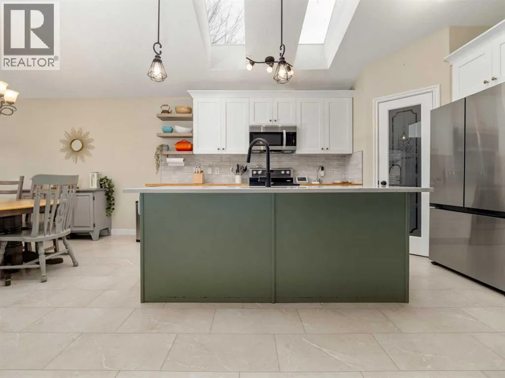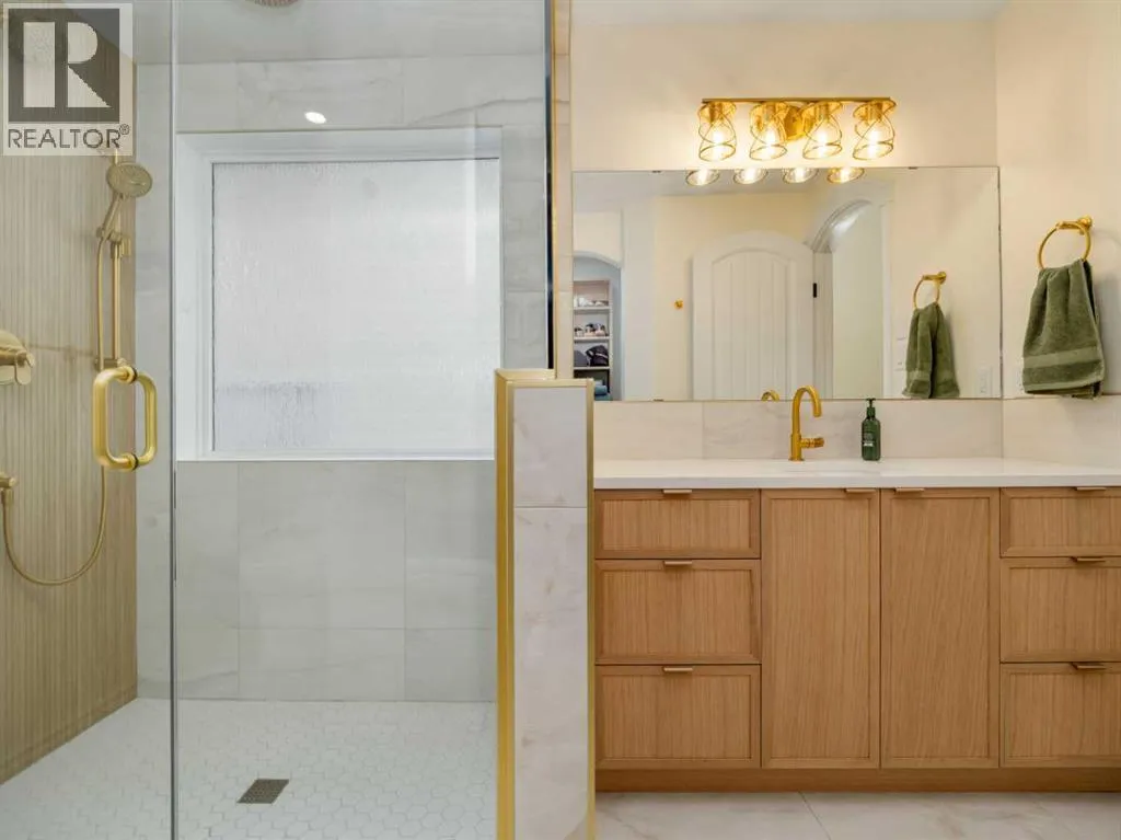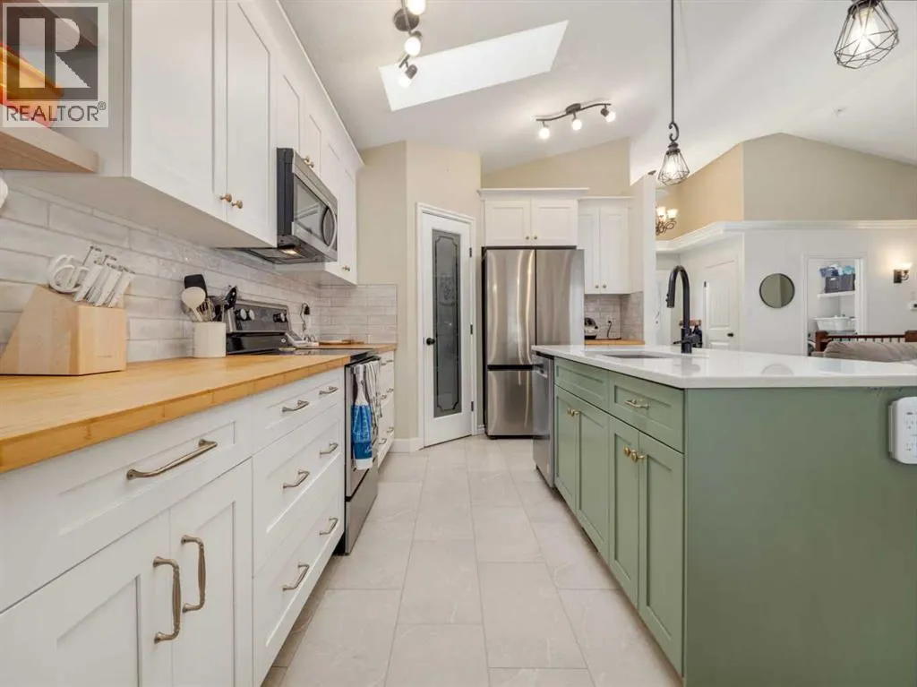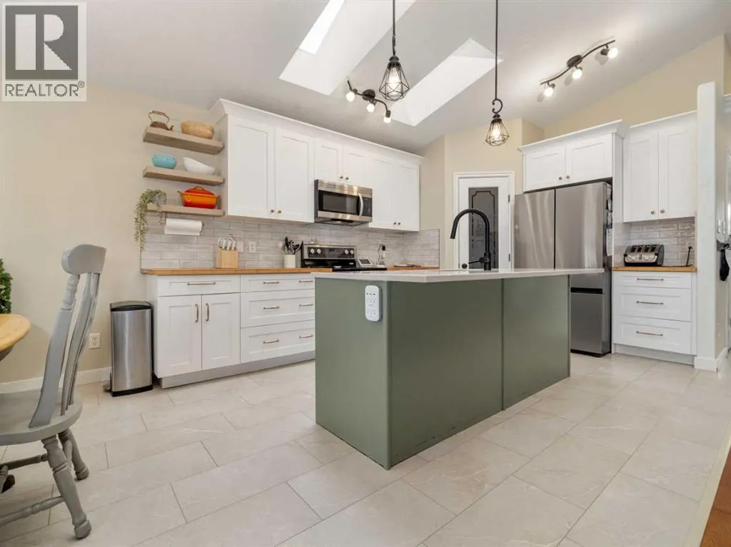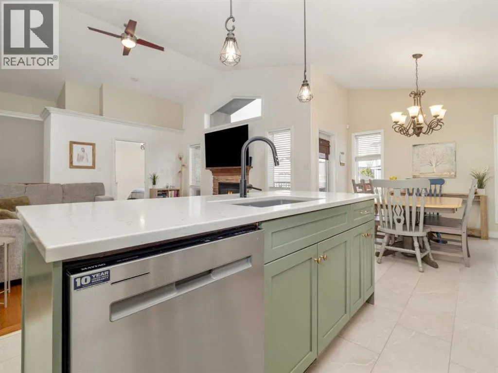 Beautiful Bungalow Living with nice updates in desirable South Lethbridge, close to all big box shopping, restaurants, grocery store, medical clinic, & other amenities! Stucco exterior with stone accents. Roof has newly installed "Net Zero" solar system(2025) that allows you to make money on power in the warmer months, and use those funds to offset your costs in the colder months. Inside you'll find a nice open plan with vaulted ceilings on main. Main floor has hardwood floors in living room and vinyl tile in in foyer and kitchen. Home features a bedroom/office just off the entry. Open plan for living room, kitchen, and dining room. Kitchen was remodeled in 2021 and features wood and quartz counters, white cabinets, stainless steel appliances, skylights above, and a 5 foot deep corner pantry. Living room has gas fireplace and large windows for plenty of natural light. Door to deck out back from dining room and primary bedroom. Primary bedroom also has vaulted ceiling and features NEWLY RENOVATED(2025) 3 piece ensuite with walk-in tiled shower and walk-in closet with organizers. A 3rd bedroom, another full bath, and a laundry room/mud room connected to the garage entrance are also on the main. Basement is fully developed with large family room that features wet bar, gas fireplace, and walk-out garden doors to covered patio below deck. Basement also has 2 more bedrooms and a flex room with double doors(currently being used as a 6th bedroom) that could also be used as a gym/craft room/music room. Another full bath completes the basement. Double attached garage for your vehicles with 220v plug that can be used to add an EV charger, RV plugin, or heavy duty tool machine. Yard is fenced and landscaped with underground sprinklers. Home has convenience of central a/c and back alley access. Take a short walk to Coulee Creek Park & Pond as you enjoy living in this fantastic neighbourhood close to everything you want & need! (id:27476)