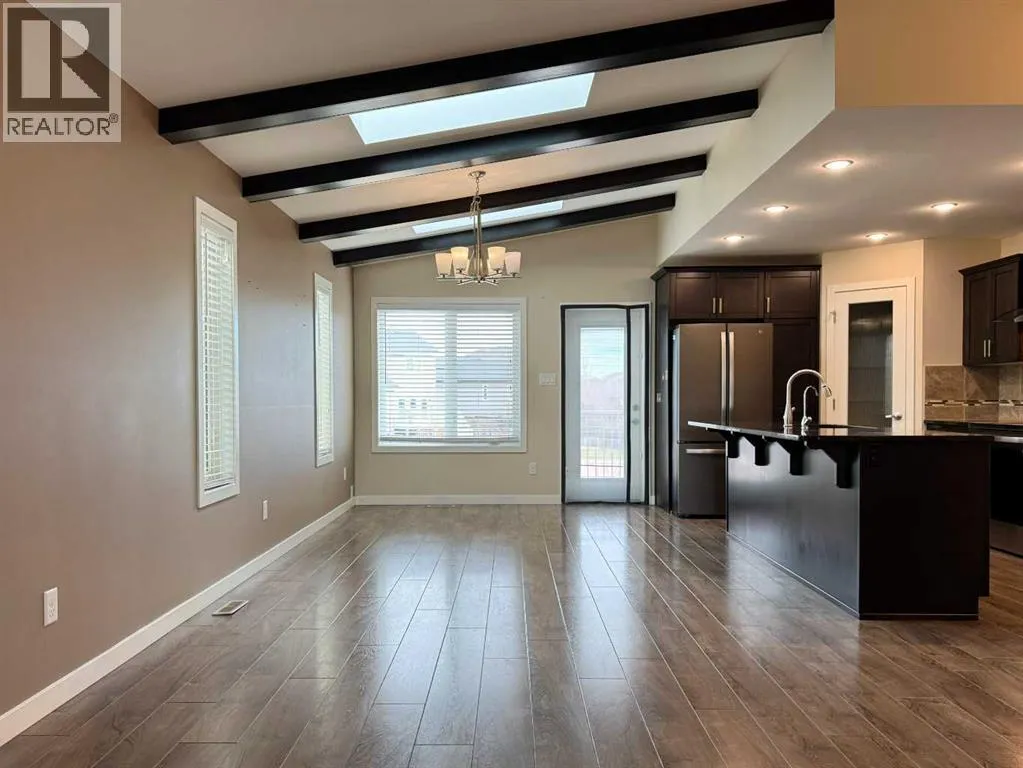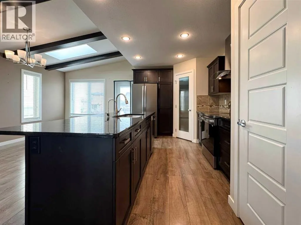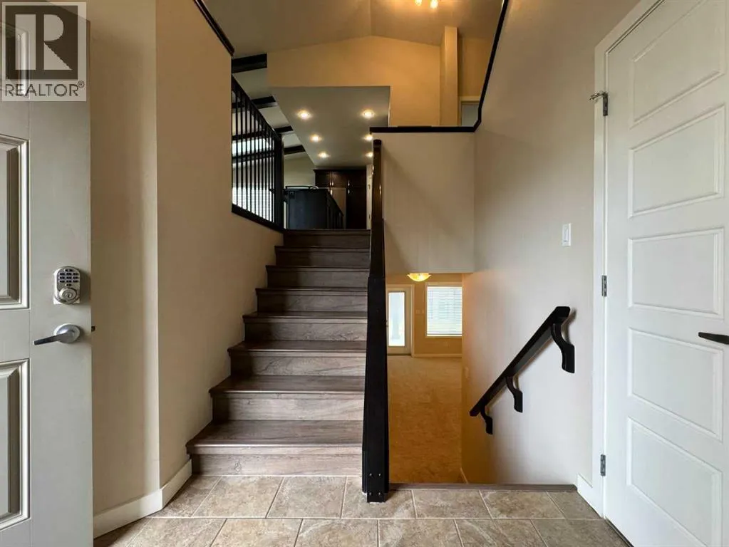 Welcome to 317 Moonlight Way W in Copperwood, a Modified Bi-Level home with plenty of space for family living. The main floor is bright and open, with the living, dining, and kitchen flowing together and direct access to the upper deck, perfect for outdoor entertaining. The primary bedroom includes an ensuite bathroom and a walk-in closet, while upstairs youâll find two more bedrooms and a full 4-piece bathroom. A standout feature of this home is the walkout basement from the family room, offering extra living space with a cozy fireplace, two additional bedrooms, another 4-piece bathroom, and a convenient laundry and utility area. Outside, the fenced backyard features a spacious deck and a storage shed, making it perfect for relaxing or hosting gatherings. This home has everything you need for comfortable family living. For a closer look, please view the video walkthrough in the links tab or on YouTube by searching the home address. (id:27476)