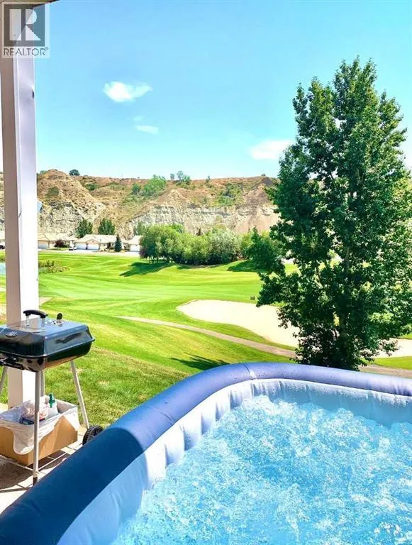 Welcome to Paradise Canyon 410-B Canyon Blvd W Lethbridge Property. Incredible luxury condo living right on the 15th Fairway of the prestigious Paradise Canyon Golf Course. This two bedrooms two bathrooms home is the bottom unit B and above is Unit A, this property has been upgraded on the interior. It has a vinyl plank flooring, granite countertops in kitchen and bathrooms. The Primary bedroom is spacious and boast of four piece ensuite with Jetted tub. The secondary bedroom very cleverly has a custom built Murphy bed. The 32 foot southeast-facing deck gets fantastic morning and midday sun and shade in the evening. A hidden gem, boasts breathtaking views of the Old Man River Valley, with lush greenery, and rolling hills that provide a stunning backdrop for outdoor enthusiasts. Whether you enjoy hiking, biking or simply taking leisurely stroll, the nearby trails and parks invites you to explore the beauty of nature right at your doorstep. Discover the allure of this community where nature meets community. Paradise Canyon is a perfect balance of its stunning natural landscapes and compliments the vibrant lifestyle of southern Alberta which offers slower-paced ambience and will appeal to those who enjoy spending time outdoors. This part of the city is excellent for those who like quiet surroundings, as the streets are usually specially peaceful. This condo building has no connection to Paradise Canyon Golf Course & Resort amenities. Important condo bylaw - No Short Term Rentals Allowed. (id:27476)