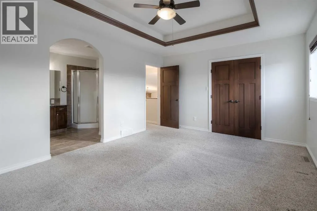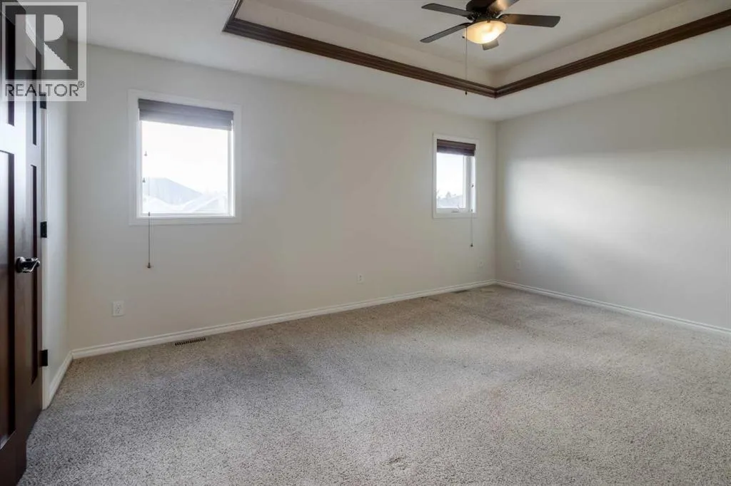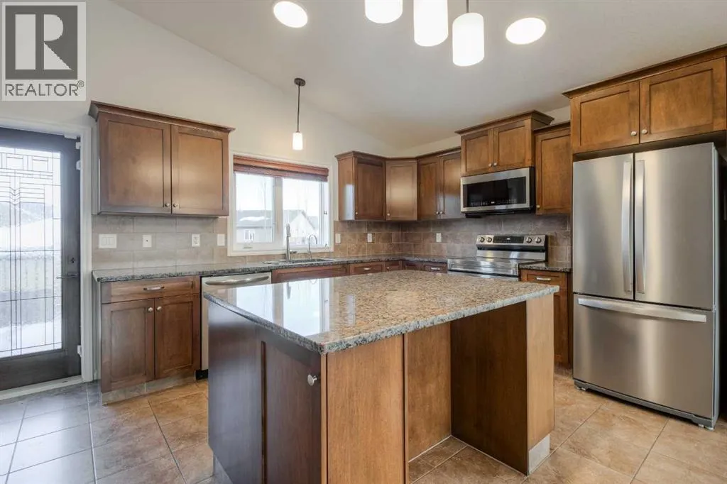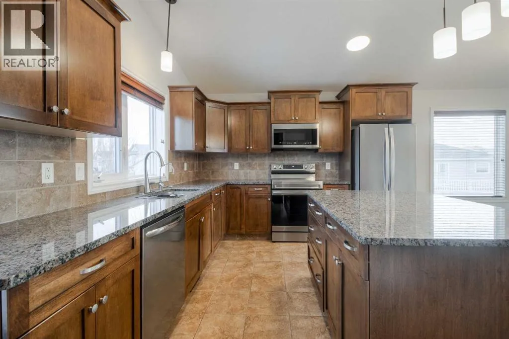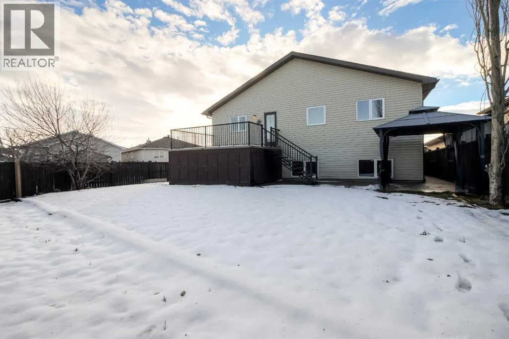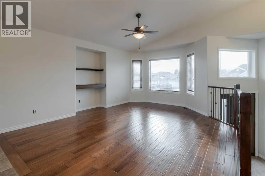 Welcome to 11 Cougar Cove North! This large bi-level home is located on a quiet street in the north Lethbridge community of Uplands. The main floor includes rich wood tones of maple cabinets, real hardwood floors, and spindle wood railings. Vaulted ceilings through the main floor living room, dining room, and kitchen provide a wide open feel accented by large windows that send natural light through this area. Two bedrooms and a 4-piece bathroom can be found on the main floor with the laundry room conveniently located adjacent to all. The secluded primary bedroom is located over the attached double garage and houses a large ensuite and walk-in closet. The basement in this bi-level is fully developed and is home to one of the largest family rooms you'll find at almost 750 square feet! You'll also find another bedroom in the basement as well as a full 4-piece bathroom and storage room. A solid home with plenty of space on a fully fenced large yard with alley access. Nothing to do but move in and enjoy. (id:27476)