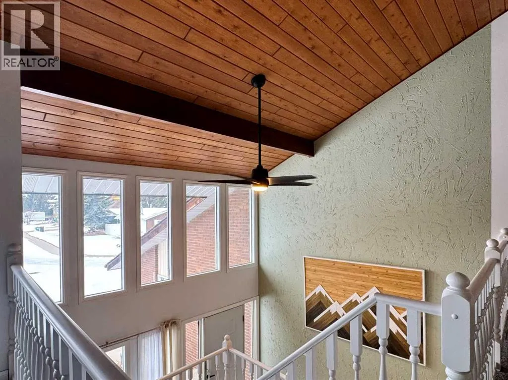 Welcome to 133 Laval Court W, a warm, inviting two-storey home located on a quiet street in Lethbridgeâs established Varsity Village. This neighbourhood is loved for its peaceful atmosphere and unbeatable access to parks, pathways, schools, and the University, plus you are just minutes from No Frills, Safeway, Save-On-Foods, and Nicholas Sheran & Laval Park. Step inside to a grand entranceway that opens into a stunning sunlit living room with a high ceiling, a cosy fireplace, and an entire wall of windows facing the backyard. It is a bright, airy space perfect for everyday living and relaxed evenings at home. The main floor also features a formal dining area, a kitchen with plenty of counter space, a handy little breakfast nook, and a pantry for extra storage. The laundry room includes two closets and direct access to the attached double car garage, adding even more convenience. Youâll also love having the primary bedroom on the main floor, complete with its own 4-piece ensuite bathroom. Upstairs, youâll find a spacious loft and three generously sized bedrooms, noticeably larger than what you typically see, along with a standout 5-piece bathroom featuring a steam shower/jetted tub, and dual vanity. The entire upper level has been refreshed with brand-new carpet and fresh paint throughout the home adds to its move-in-ready feel. The basement provides even more room to grow with an oversized family room, another spacious bedroom, and a 3-piece bathroom. With two furnaces keeping the home comfortable year-round, a low-maintenance yard, sturdy cinder block fencing, rear lane access, concrete RV parking, and a big front driveway, this property offers an exceptional blend of space, comfort, and practical living. Please view the video walkthrough in the links tab or on YouTube by searching for the home address; this is a home youâll want to experience in full. (id:27476)