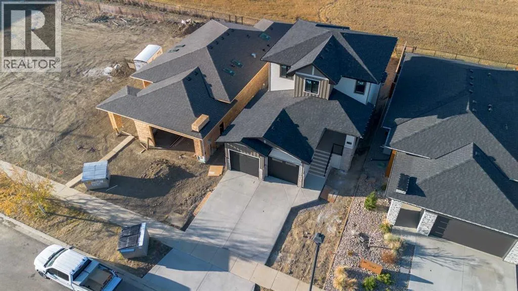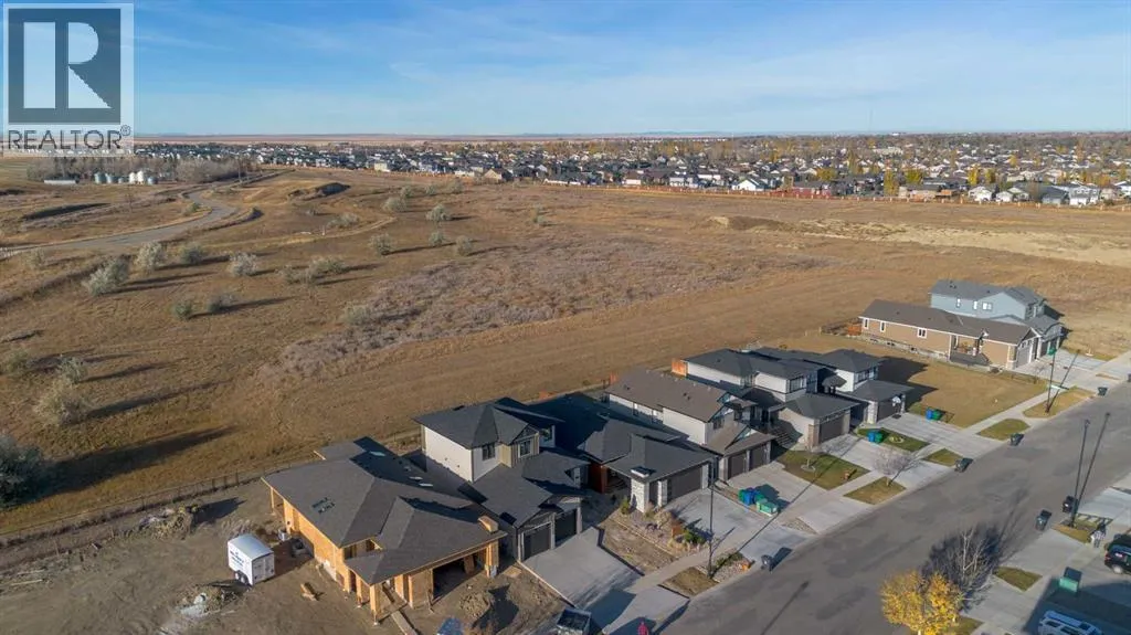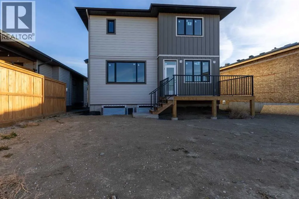 A custom home by Janus Homes - offering a lifetime of NO rear neighbours, just a walking path that can take you to the coulees! This 2 storey is a unique take on a new build - with modern selections and finishes, a west-facing yard and all while situated in a fantastic neighbourhood. This home was thoughtfully designed with family function in mind starting from a huge covered front verandah, making the entry not only protected from the elements, but offers great options for seating, decor and more! There's an extended mudroom with custom lockers and storage space and laundry and is conveniently not visible to visitors! Main floor half bath and the best part - the sun kissed entertaining space with statement quartz counter tops, plentiful storage space, a gas fireplace and a completed back deck! Heading upstairs there are 2 bedrooms that share a 4 piece bathroom and the primary suite has been curated as a deluxe space to relax in! From the double doors to enter, to the vaulted ceilings, to the 4 piece ensuite with walk-in tiled shower, separate toilet room, storage behind the mirrors and a walk-in closet contained within the bathroom! The basement is unfinished but ready for your creative touches! (id:27476)