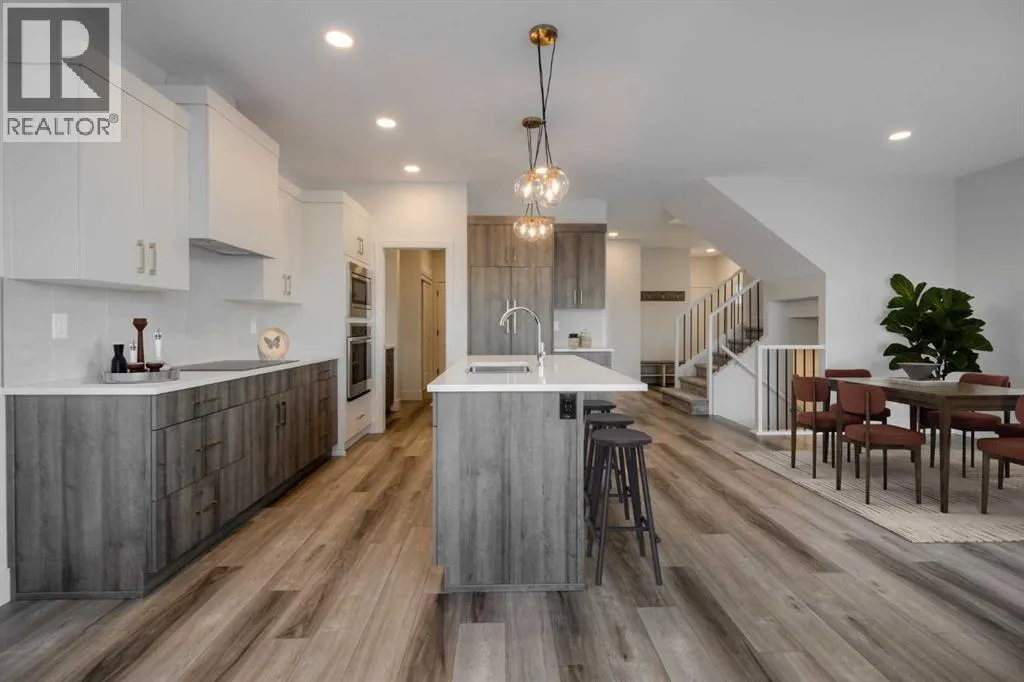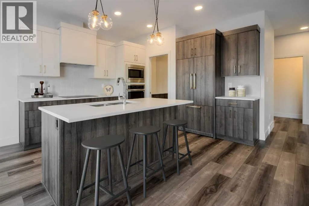Welcome to the "Comrie" by Stranville Living, located in the desirable Lethbridge community of Southbrook. This new home is situated merely a few dozen meters from Dr. Robert Plaxton K-5 public elementary school, whose property includes a new playground, soccer pitch, baseball diamond, and a basketball court. Southbrook is conveniently located minutes away from big box shopping, various restaurants, and the VisitLethbridge.com arena and event center. This two storey home is well laid out and boasts a main floor rivaled by few homes of this size. It incudes a beautifully appointed kitchen with Adora Cabinets, fully tiled backsplash, and quartz countertops at the base cabinets and large island. Stranville Living's top tier appliance package includes a seamlessly integrated paneled Fisher & Paykel fridge, paneled dishwasher, induction cooktop, built-in hood fan, and a stainless steel wall oven and microwave combo unit. All in all, this is a clean and tight family home backing onto a new elementary school in one of the nicest neighborhoods in south Lethbridge. Tasteful finishes and quality workmanship make this an excellent investment for a buyer looking to start or continue the path to building equity through home ownership. High efficient mechanical equipment, Low E windows, and spray foam in the rim joists help keep your heating ad cooling costs in check. Very cool house on a terrific street in south Lethbridge! Photos contain virtual staging. There's nothing like NEW! (id:27476)