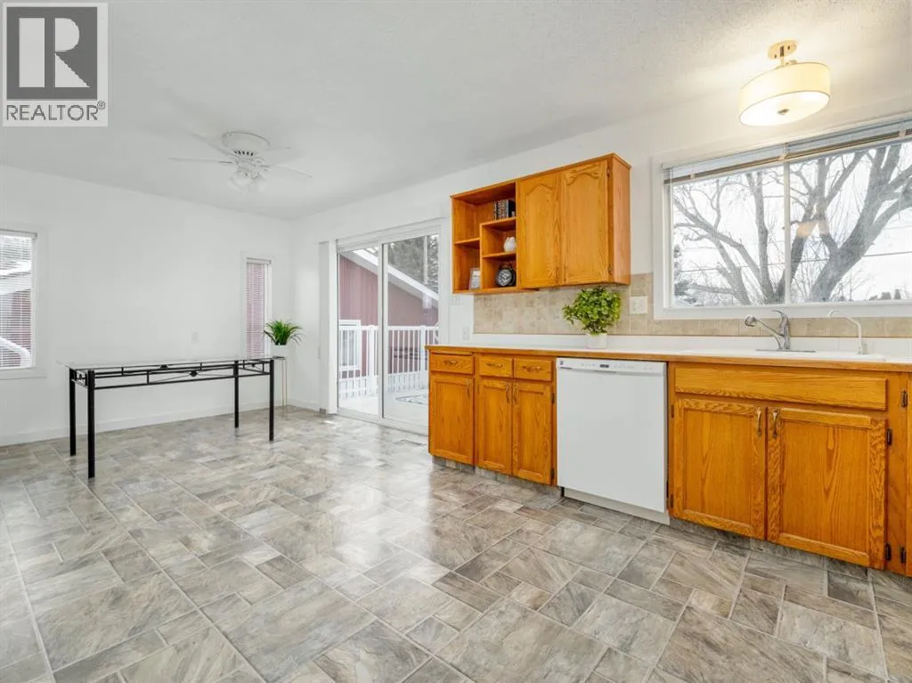 Welcome to this charming family home on a quiet street in the highly sought-after Lakeview neighbourhood. Ideally located close to Henderson Lake, the new Lethbridge Trade & Convention Centre and Lakeview Elementary School, this property offers the perfect setting for your growing family. The main door features a bright, fairly open layout with a spacious living room and plenty of room in the kitchen/dining area for everyday living and entertaining. There are 3 bedroom on the main and a convenient 2 piece ensuite off the master bedroom. There is a 2 tiered deck, with updated patio doors, new railings & completed with a hot tub, extending your living space outdoors. The fully developed lower level offers optional versatility with a very large 4th bedroom, a 3 piece bathroom, and a generous family room with a wet bar and wood burning fireplace - for those cozy evenings or hosting guests. A combined storage/laundry room add to the homes functionality. The furnace and hot water tank have been updated, all appliances are included. Outside, the large fully fenced backyard is perfect for kids and pets, featuring a fire pit, a large shed, (10' x 10' with power) and a parking pad off the alley. The front yard has a winding sidewalk and a charming stone flower garden. for easy summer maintenance there is an underground sprinkler system. This is a wonderful opportunity to own a well maintained home in one of Lethbridge's most family-friendly neighbourhoods! A quick possession is a real option here too! (id:27476)