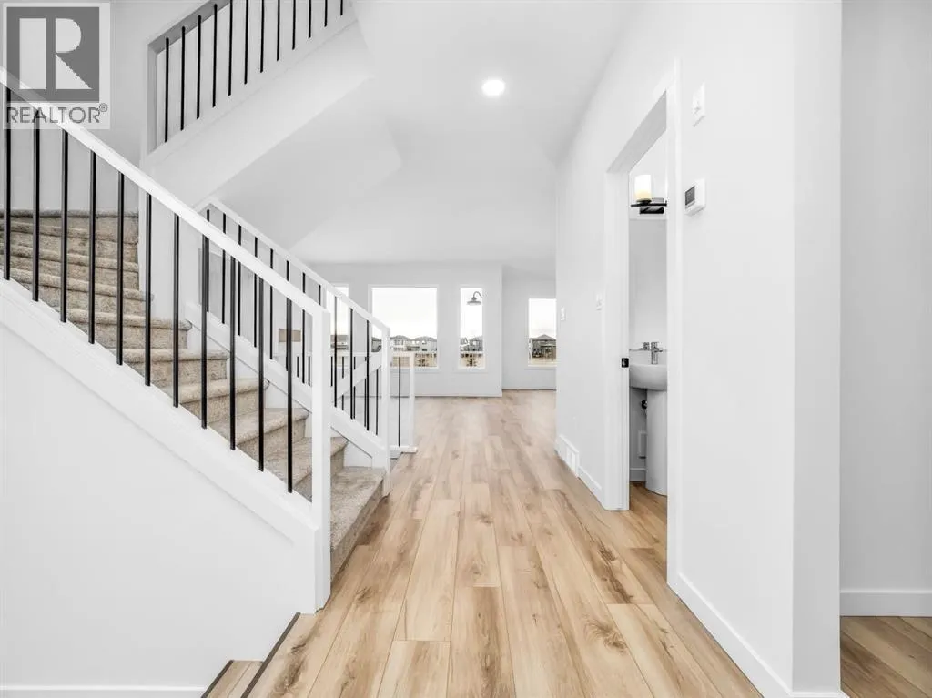 Welcome to the "Aerin "model by Avonlea Homes. This particular home backs onto school grounds and loaded with extra features. Upon entry, hang up your coats in the beautiful mud room conveniently situated near the garage entrance. Unload your groceries effortlessly with immediate access from the mud room to the walk through pantry. the main floor includes a convenient 2-piece bathroom, and a central staircase. The open concept adds to the entertaining- friendly layout with easy access to the back deck. Enjoy the gas fireplace on these cold winter nights. Large windows throughout allow for natural sunlight to fill the home. The upper level features a spacious bonus room, 3 bedrooms, Master retreat with walk-in closet and 5 piece ensuite with separate tub and shower and dual sinks separated by a sliding barn door. There is also a bright laundry room with laundry sink. The unfinished basement and is set up for a future family room, bedroom and another full bath. Enjoy the LARGER GARAGE for parking and extra storage. Located in Southbrook backing onto school, playground and park. Also close to all the amenities the South side has to offer. NHW. Home is virtually staged. (id:27476)