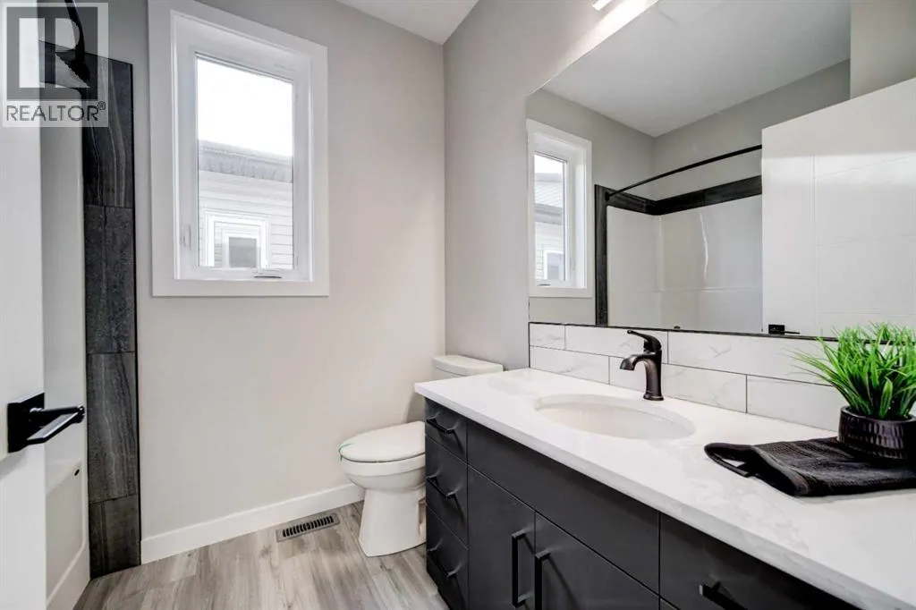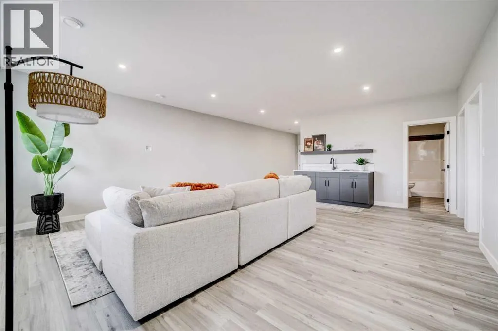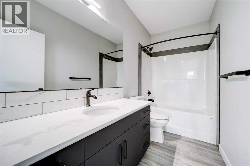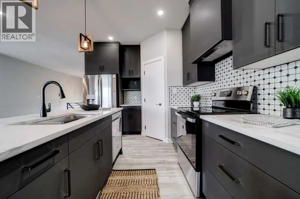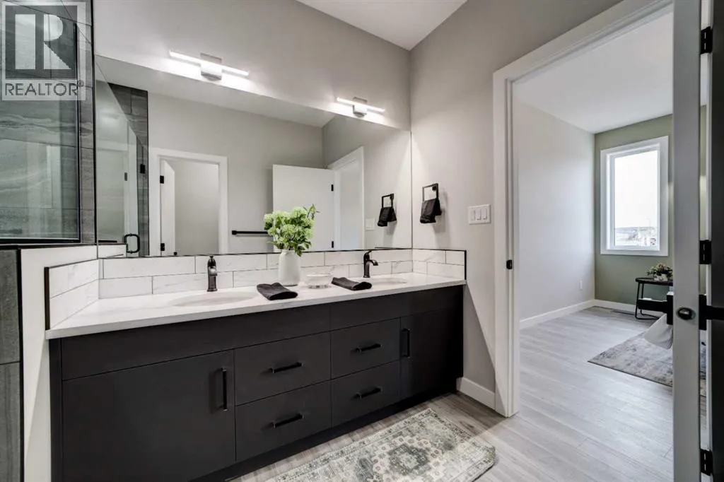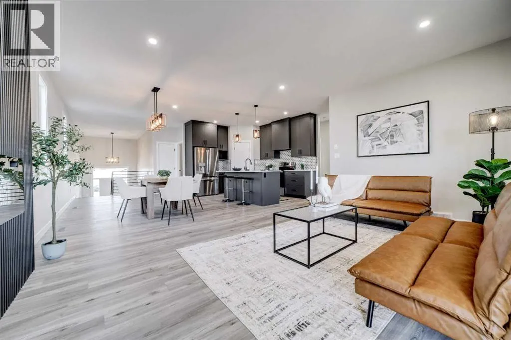 This stunning brand-new, fully developed, walk out bi-level build, is the definition of âturn key GORGEOUSâ in a close, right beside a park! Featuring over 2600 square feet of entirely finished space with loads of beautiful upgrades, and designed with real-life functionality in mind. This one offers 5 bedrooms (2 up, 3 down) and 3 bathrooms, with a bright walkout basement that feels like a second main floor. The upper level is warm and stylish, anchored by a beautiful show stopping 72 inch fireplace in the living room, and a covered deck right there for BBQing or just taking in some fresh air, even in the rain or snow. The upgrades in this house include but are not limited to, a kitchen finished with granite countertops and full-height cabinetry that runs right to the ceilingâclean, modern, and timeless. A big central island in this open concept main living space. Energy star appliance package in this energy star rated house, that includes washer, dryer and a gas stove. This one also features main floor laundry. The primary suite located on the main floor is a standout with a large walk-in closet and stunning private ensuite including a gorgeous walk in custom built shower, dual vanity in granite with loads of counter space, and a separate water closet. The additional bedrooms are generously sized throughout, giving you flexibility for kids, guests, office space, or all of the above. Downstairs is where this home really surprises: 9â ceilings, oversized windows, huge family room, and a wet bar for entertaining, secondary laundry for convenience, and its a walkout! Add instant hot water on demand, and a front attached double garage, plumbed for heat that features a huge upper open space for a mezzanine or a lift- and youâve got a home that hits hard on value at its list price. If youâve been waiting for a move-in-ready new build that checks every box, in a close, next to a park, for under $600K- this is the one. Call your agent today and check it out before you miss it! (id:27476)