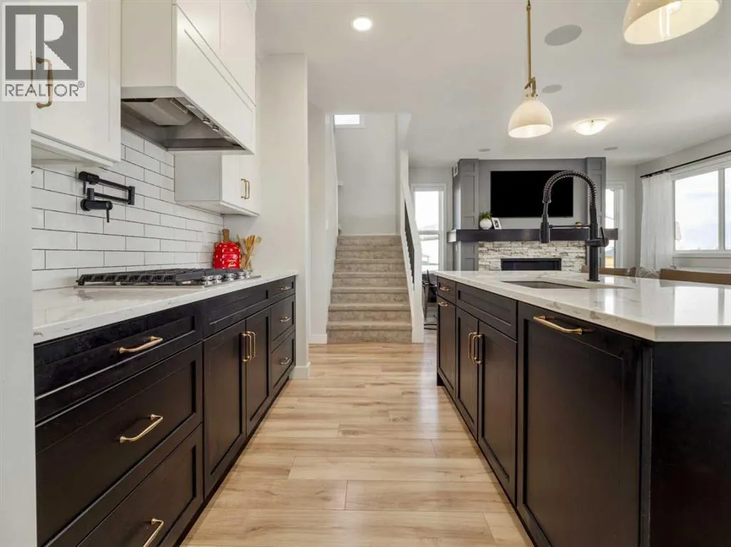 Welcome to 2701 46 Street S ... where design, space, and technology meet to create one of the most complete family homes on the market. With 6 bedrooms, 3.5 bathrooms, and over 2350 sq ft above grade, this property delivers every feature buyers say they want, but rarely find all in one place.The main floor sets the tone immediately: a wide, welcoming foyer (not the cramped kind), high ceilings, and natural light spilling through oversized windows. The open-concept living area centers around a stone-faced gas fireplace and custom feature wall ... equal parts warmth and statement. The kitchen is a true showpiece with two-tone cabinetry, stone counters, brass hardware, pot filler, wall oven and built-in microwave, and a large island that ties the entire space together. A built-in coffee bar/butlerâs pantry, formal dining area overlooking the yard, and smart-home lighting and window blind controls complete the main level. Thereâs also a dedicated office or flex room behind glass French doors, with in-floor power ready for a clutter-free setup.Upstairs, the layout was designed for how folks actually live: four bedrooms, including a stunning primary retreat with massive windows, a spa-style ensuite (dual sinks, full-tile shower, walk-in closet), and an upper-floor laundry room thatâs an actual room ... not machines hidden in a hall closet. The additional full bathroom includes dual sinks and a separated toilet/shower area so multiple people can use it at once. A bonus room with custom in-wall speakers gives you a perfect rec room or media space to unwind in.The fully finished lower level takes the home to another level ... professionally completed as a two-bedroom, one-bathroom legal suite-style space. Ideal for multi-generational living, extended guests, or simply more room to grow, it includes a full kitchen, living area, and private bedrooms that feel bright and inviting, not âbasement-like.âThe property is complete with central air conditioning, underground sp rinklers, automated lights and blinds, and a 200-amp panel ... ready for EV charging or future upgrades. Every square foot here has been finished with purpose, quality, and care.If youâve been waiting for a home that actually checks every box, this is it. Fully loaded. Fully finished. Fully ready for whatâs next. Call your real estate professional for your private viewing today. (id:27476)