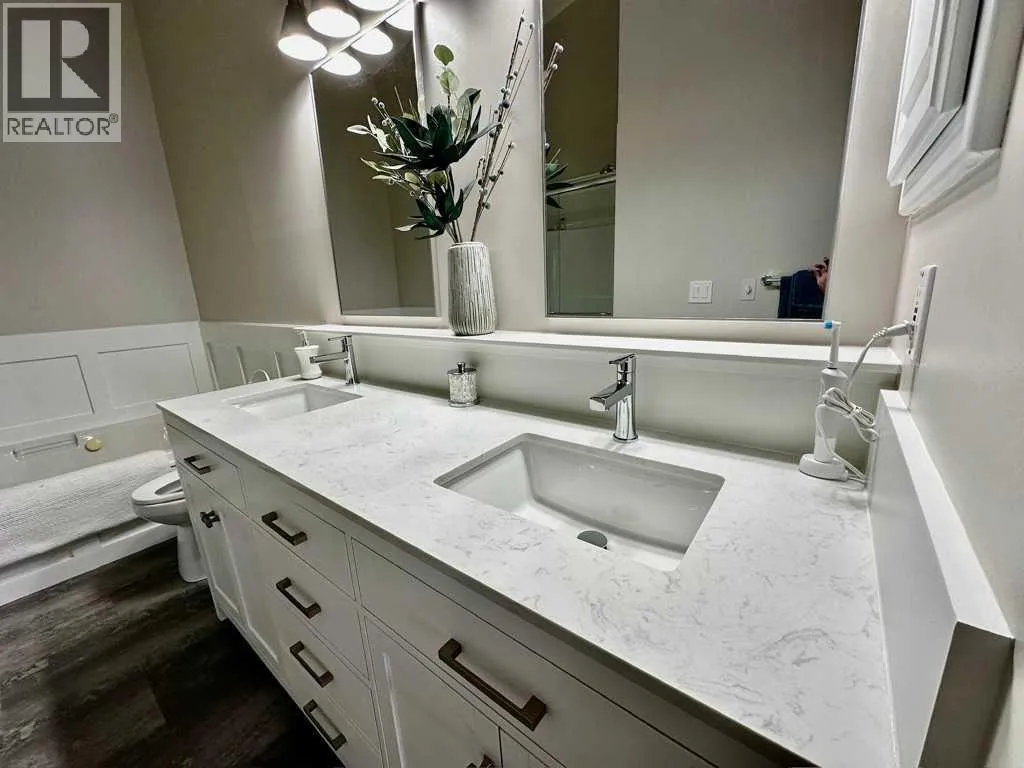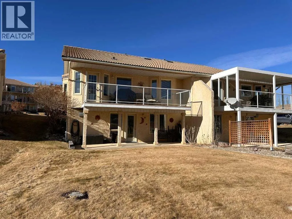 Experience year around resort-style living in this beautifully updated half-duplex in Paradise Canyon. The open main floor is filled with natural light and features a warm living area and convenient kitchen, plus a main-floor primary bedroom complete with a jetted tub in the generous en-suite. Take in gorgeous views of the golf course and river coulee right from your window. The fully finished lower level includes a spacious family room with fireplace and walkout to lower patio, and the large double attached garage offers plenty of storage and convenience. Steps from the clubhouse and surrounded by scenic beauty, this home truly feels like a getaway. (id:27476)