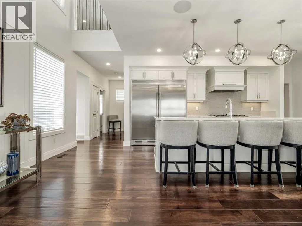Come and discover a truly one of a kind luxury home in the beautiful neighborhood of Prairie Arbor. This uniquely stunning residence boasts an open concept main floor designed to entertain. The gourmet kitchen amazes with quartz countertops, 6 burner gas stove, under counter lighting, garburator, counter depth fridge and freezer, and an oversized island for meal prep and casual dining. The enormous butler's kitchen/pantry is one that any chef would envy. The main floor has a large kitchen seating area as well as a traditional formal dining room and a truly beautiful living room. A large, partially covered deck adds extra space and a bright airy feel to the main floor. An elegant powder room on the main floor, allows entertaining to take place all on the main level. Continuing the grand design to the 2nd floor you will find an interior balcony overlooking the main floor foyer, highlighted by a modern chandelier. This floor has 3 of the four spacious bedrooms. The main bedroom is a truly amazing personal space with a 4 pce ensuite with vanity area, a massive double shower with bench and a room sized walk in closet complete with 2 sets of built in drawers, an entire wall of shelving for shoes, a full length mirror and island with custom made jewelry drawers. The main laundry is on the second floor, as well as another elegant 4 pce bathroom and 2 more large bedrooms. The bonus room upstairs is the perfect size for some family downtime before you turn in. The walkout basement is equally impressive both in luxury and functionality, boasting a huge theater room, an office, a second laundry with stackable washer and dryer, a dry storage room, cold storage and outdoor storage with Peka rollshutter closure. The oversized bedroom has 2 large closets and large windows for a main floor feel, with in floor heat throughout. The location of the 3 pce bathroom for this floor gives an ensuite feel while serving as the main bathroom for this floor.Another kitchen allows for food serv ice in the games/family room and sliding doors open onto a large covered patio for more indoor outdoor living space. There is a large, well windowed mudroom with built in bench and storage cubbies, that leads to a massive 3 car garage. The garage is every guy's dream with a 12 ft ceiling and Platinum garage floor treatment, in floor heating and wiring for an EV. The 3rd garage door has a pull-through door to a concrete pad in back. For additional storage, there is a newly built house-matching shed in back for extra storage items so your garage can be dedicated to parking vehicles. With the front and side yard fully landscaped with an underground sprinkler system, this lot still has space enough to add any other luxuries you can dream up. From Home One outdoor lighting to Control 4 smart home systems, this home has it all; great location, luxury features, grand design with all the extras. It truly is a dream home. (id:27476)