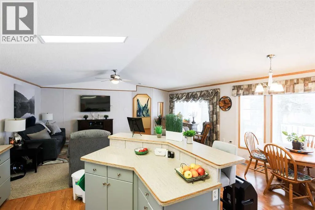 Welcome to Parkbridge Estates, a desirable 55+ adult living community known for its exceptionally well-maintained manufactured homes, scenic pond, and peaceful walking paths throughout the park. Enjoy worry-free living with snow removal and lawn care included in the maintenance.This well-cared-for home offers four bedrooms and two bathrooms, providing flexibility for guests, a craft or sewing room, home office, or additional TV space. The spacious living room features vaulted ceilings and central air conditioning for year-round comfort. The kitchen includes a corner pantry, breakfast bar, and ample workspace, with two convenient entrances into the home.The primary bedroom is privately located at the back of the home, while the remaining three bedrooms are positioned at the front. just off the primary bedroom is laundry with ample storage and raised laundry on pedestals. An oversized single garage (16â x 20â) is connected to the home by a breezeway and includes a chairlift for added accessibility. A large deck extends your living space outdoors, and has separate storage shed provides additional storage.Parkbridge Estates also offers a welcoming common area for residents to gather, and its south location provides easy access to shopping, restaurants, and everyday amenities. Land lease is $615 per month. A wonderful opportunity to enjoy low-maintenance, community-oriented living. (id:27476)