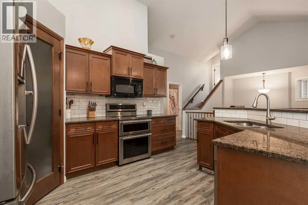 In a neighborhood dominated by two-storey homes, a bilevel with a walk-out basement is a rare find. Even better, this one backs onto a beautiful park with a playground, walking paths and an elementary school nearby. If that sounds like your wish list, this home may be exactly what youâve been waiting for. From the moment you step inside, youâre welcomed by soaring ceilings and an abundance of natural light thanks to skylights and bright southern exposure. You'll notice the recent updates to the flooring, paint, lighting, and more throughout the home. The kitchen is functional and beautiful, featuring granite countertops, high end stainless steel appliances, and a corner pantry for plenty of storage. Take in the view of the park from your large dining area which flows seamlessly into the living room making for the perfect space to host and entertain. Just off the dining room, step onto the back deck for the perfect spot to enjoy summer BBQs and relaxing in the sun. Additionally, the main floor features a spacious bedroom, a 4 piece bathroom, and a conveniently located laundry area. The primary bedroom suite is a great place to relax and unwind. Youâll love the jetted tub, tile shower, and a generous walk in closet. Moving to the lower level you'll find a very bright space with large windows and a separate entry to the back yard. This level features a large family room with a natural gas fireplace, two additional bedrooms, and a full bathroom. Outside, you'll enjoy having both covered and uncovered patio spaces, plus your own hot tub to soak in while enjoying the tranquility and views of the park behind. This fully finished, move in ready home is the kind that doesnât come up often. Be sure to check out the virtual tour, and call your favorite REALTOR® to book your private showing today. (id:27476)
