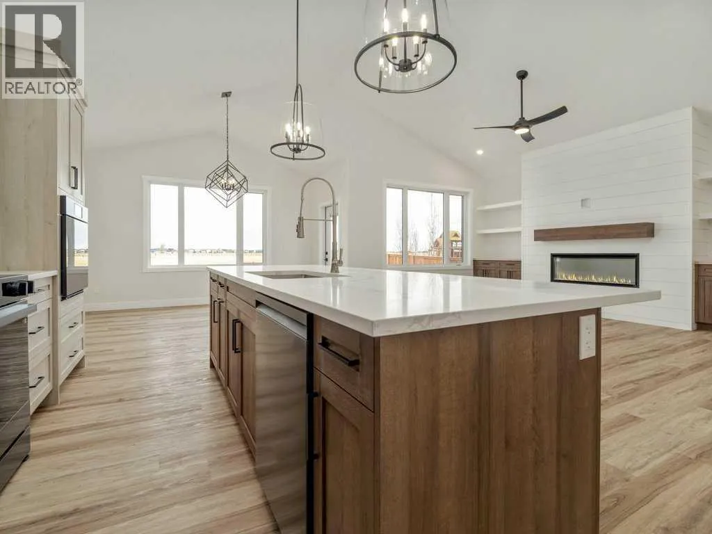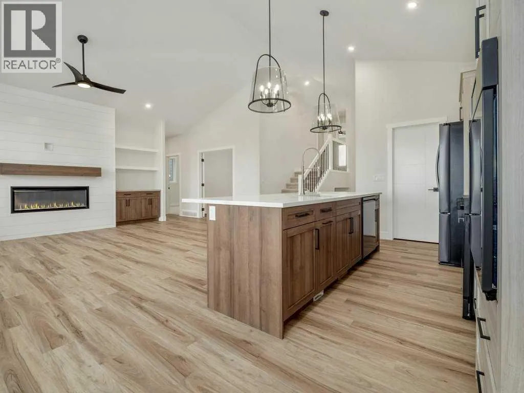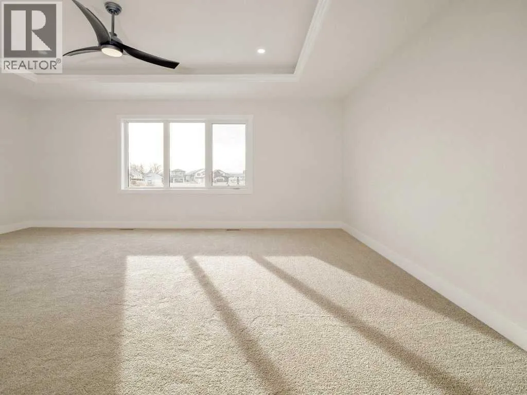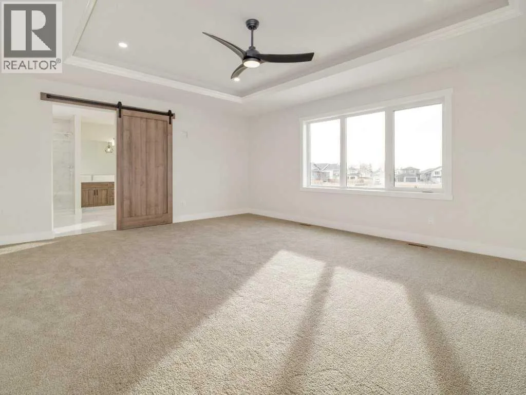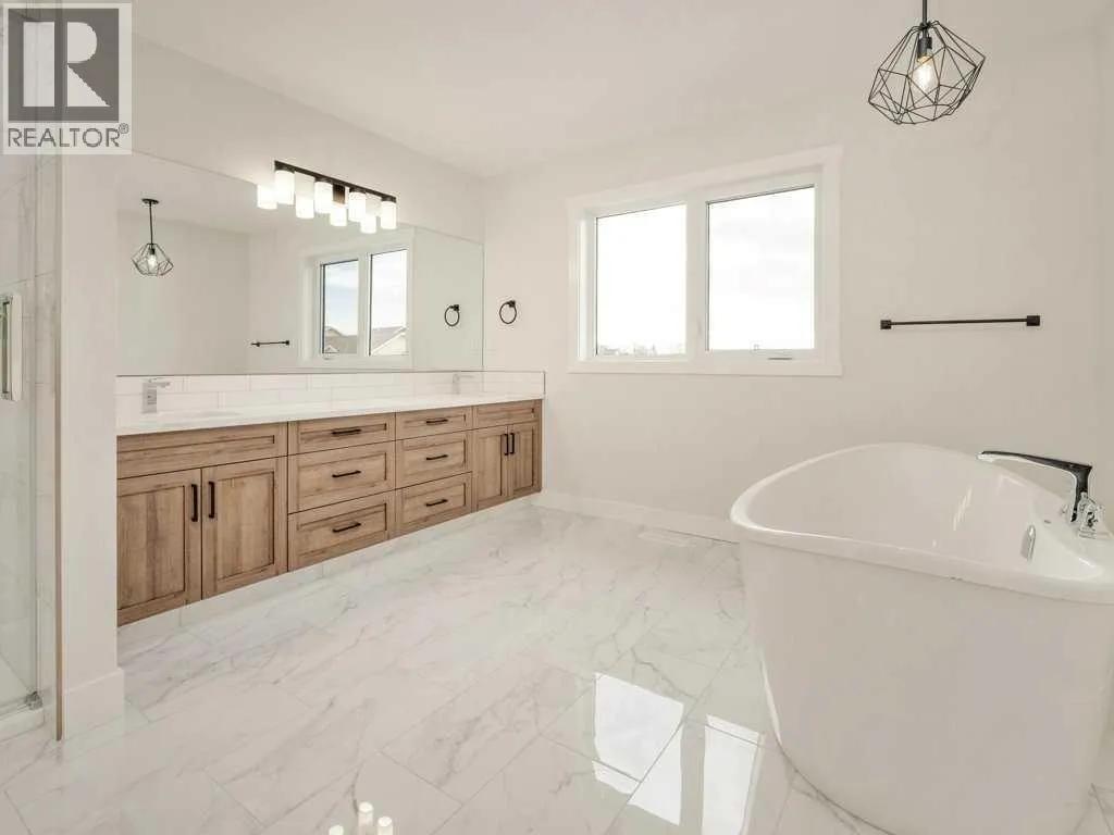 Discover exceptional living in this brand-new, fully finished five-bedroom, three-bathroom executive residence in the sought-after community of Southgate built by the amazing Grizzly Ridge. Offering a rare TRIPLE CAR ATTACHED GARAGE this home provides unparalleled space for vehicles, recreation, hobbies, or the ultimate private retreatâwhether a workshop, collectorâs showcase, or future golf simulator lounge. The main level spans an impressive 1,398 sq. ft., thoughtfully designed for both refined entertaining and comfortable daily living. A soaring vaulted ceiling, expansive windows, and a gorgeous gas fireplace with custom built-in shelving create a bright yet inviting great room atmosphere. The spacious eat-in kitchen and dining area seamlessly connect to the future rear deck, ideal for effortless indoor-outdoor gatherings. There is also a versatile flex room offers the perfect setting for a private office, library, or playroom, while two generous bedrooms and a beautifully appointed four-piece bath complete the level. Privately positioned on the upper floor, the primary suite is a true retreat boasting an impressive 717.37 sq. ft., featuring a spa-inspired ensuite with tiled glass shower, freestanding soaker tub, double vanity, and walk-in closet, all elevated by elegant tray-ceiling detailing and designer lighting. The fully developed lower level (1213.78 sq. ft.) extends the homeâs lifestyle appeal with a spacious recreation area, wet bar, and a second fireplace with custom built-insâperfect for entertaining or relaxed family evenings. Two additional bedrooms and a luxurious five-piece bathroom provide ideal accommodation for guests, teens, or multigenerational living. With no additional new construction for Grizzly Ridge anticipated until later this year, this move-in-ready home represents a limited and highly desirable opportunity to secure brand-new luxury in one of the areaâs most coveted neighborhoods. (id:27476)