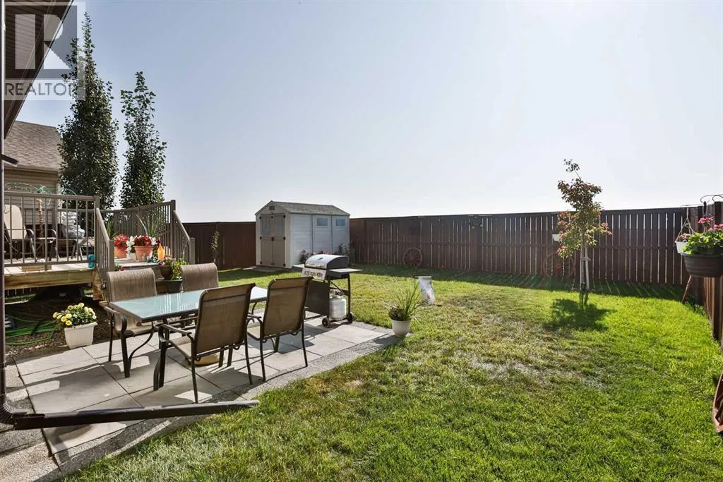 Check out this fantastic fully developed 3 bedroom home with mountain views! Located in the Sunridge neighborhood, this home, built by Cedar Ridge Homes, has it all; all of the quality upgrades you would expect to find in a showhome, located on a quiet street close to amenities, backing onto an open field so no back neighbor, and stunning views of the mountains. This home has been immaculately maintained and it shows. The main floor offers a bright open floorplan with beautiful espresso colored cabinets, gorgeous granite countertops, a pantry, and stainless steel appliances. The dining room and living room have large picture windows to take in the expansive view offered by having no back neighbor or development behind the property. The backyard is fully fenced and landscaped. Upstairs offers 3 bedrooms and boasts newer premium carpet with upgraded underlay you can see and feel instantly. The master bedroom has a walk-in closet and ensuite with tiled glass shower and large soaker tub. The basement was professionally finished in 2021 to seamlessly match the rest of the home and adds an additional TV room, storage room, and 3 piece bathroom with a glass tiled shower. The bright white walls, windows, and premium finishes make this a beautiful and comfortable space. The home also has all of the functional features you would want for added convenience like a double attached garage with a gas heater, air conditioning, tankless hot water heater, and a shed in the backyard for additional storage. This is the perfect home with everything you could want, quick possession possible, call your favorite real estate agent today to view. (id:27476)