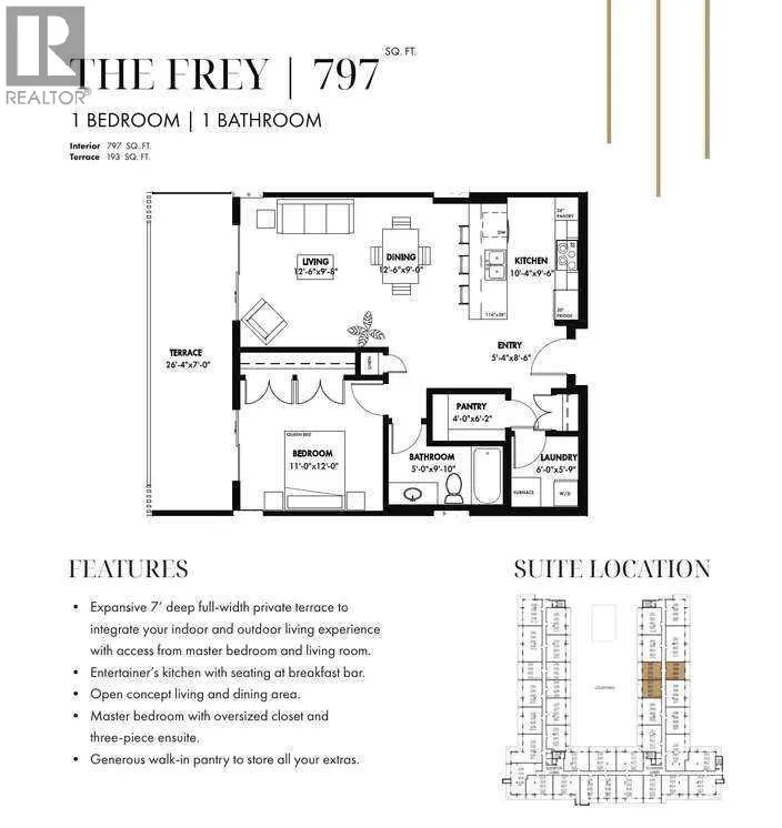 For more information, please click the "More Information" button. Encounter the ultimate modern living with this thoughtfully designed residence, where every detail is crafted for comfort, style, and convenience. This suite offers an expansive 7-foot-deep, full width private terrace that seamlessly integrates the indoor and outdoor living experience. Enjoy direct access from both the primary bedroom and living room - perfect for morning coffee, evening relaxation, or entertaining guests in a tranquil setting. The kitchen is a culinary haven, featuring a spacious breakfast bar with seating. Whether you're hosting friends, preparing family meals, this kitchen is designed to inspire and connect. Photos contain digitally rendered and/or sample images. (id:27476)