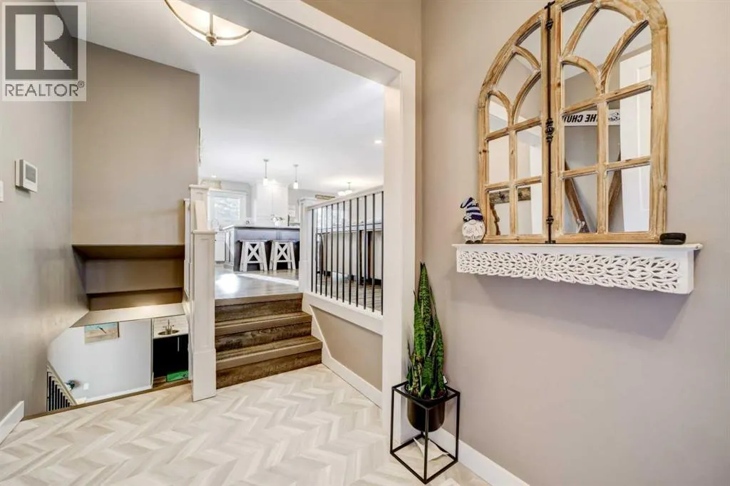 This fully renovated bungalow backs directly onto beautiful Meadows Park, offering privacy, green views, and a peaceful setting. The stunning kitchen features two-tone white and black cabinetry, stainless steel appliances, and a huge white quartz island perfect for entertaining, plus a window overlooking the park.With 5 bedrooms, 3 full bathrooms, and two spacious living rooms, there is plenty of room for everyone to enjoy their own space. Two fireplaces add warmth and comfort throughout the home.The renovation was completed approximately nine years ago and included new windows, roof, furnace, hot water tank, flooring, bathrooms, trim, lighting, mirrors, glass doors, blinds, shutters, exterior paint on stucco, Hardy board siding to replace old siding, and new garage doors. A brand-new front entry adds extra space and generous closet storage and add a great welcoming feel.Outside, the giant backyard features a large tiered deck and mature trees from the park that provide both beauty and natural shelter. A unique drive-through single garage allows access to the backyard for additional parking, with the potential to build a second garage if desired.Located on a quiet street and backing onto green space, this is a beautiful family home that offers comfort, functionality, and an exceptional setting. (id:27476)