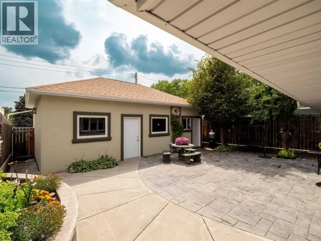 Rare opportunity to own a thoughtfully designed walkout bungalow on coveted 7 Avenue South nestled in one of Lethbridgeâs most historic and desirable neighbourhoods. Just steps from Henderson Lake, Spitz Stadium, the outdoor pool, tennis courts, schools, the regional hospital, and more, this home offers the best of lifestyle and location. Inside, youâll find four spacious bedrooms, two full bathrooms, and a convenient half bath. The open-concept kitchen features a raised eating barâperfect for entertaining or casual dining. Built with energy efficiency in mind, this home boasts ICF construction to the roofline, passive solar design, brand new Navien Combi-Boiler (oct 2025) for downstairs heated flooring and household domestic hot water. The walkout basement includes a wet bar and opens to a custom-stamped concrete patio and low-maintenance backyard oasis with garden irrigationâideal for relaxing or hosting. A double detached garage with 10' doors and an additional flex room provides plenty of space for a workshop, studio, or storage. Additional features include central A/C, central vac with attachments, and underground sprinklers. Located along a bike lane corridor, the street benefits from slower trafficâadding to the peaceful charm of this exceptional home. (id:27476)