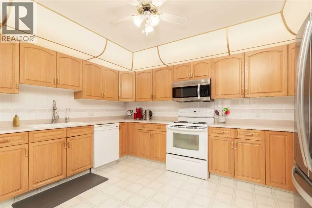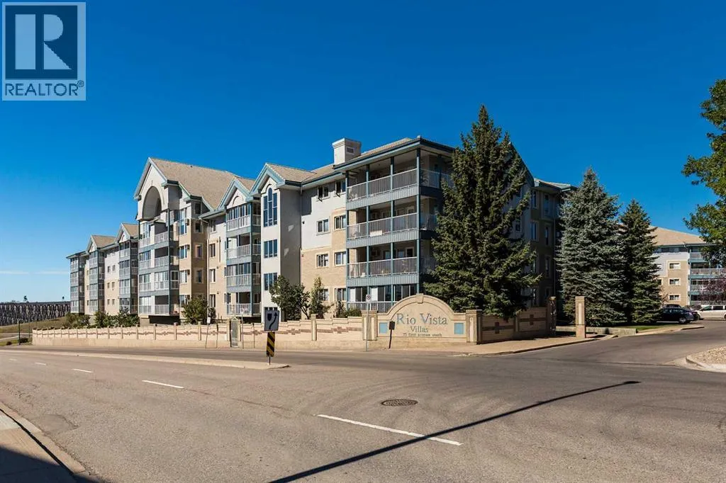 Here is the exceptional floorplan you have been waiting for in the 55+ building of Rio Vista! With over 1300 sqft of living space, this clean and bright unit features an open floor plan, extra large kitchen with stainless steel fridge & OTR and a spacious formal dining area. There's two large bedrooms, two full bathrooms including a master bedroom ensuite and laundry room with space for a second fridge or freezer. Located on the main floor with Northern exposure, you can enjoy summer afternoons on your oversized deck which faces a greenspace and trees. Complete with a separate storage unit, underground parking space and all the amenities Rio Vista has to offer like a fitness room, library, games room and party room. This one checks all the boxes! (id:27476)
