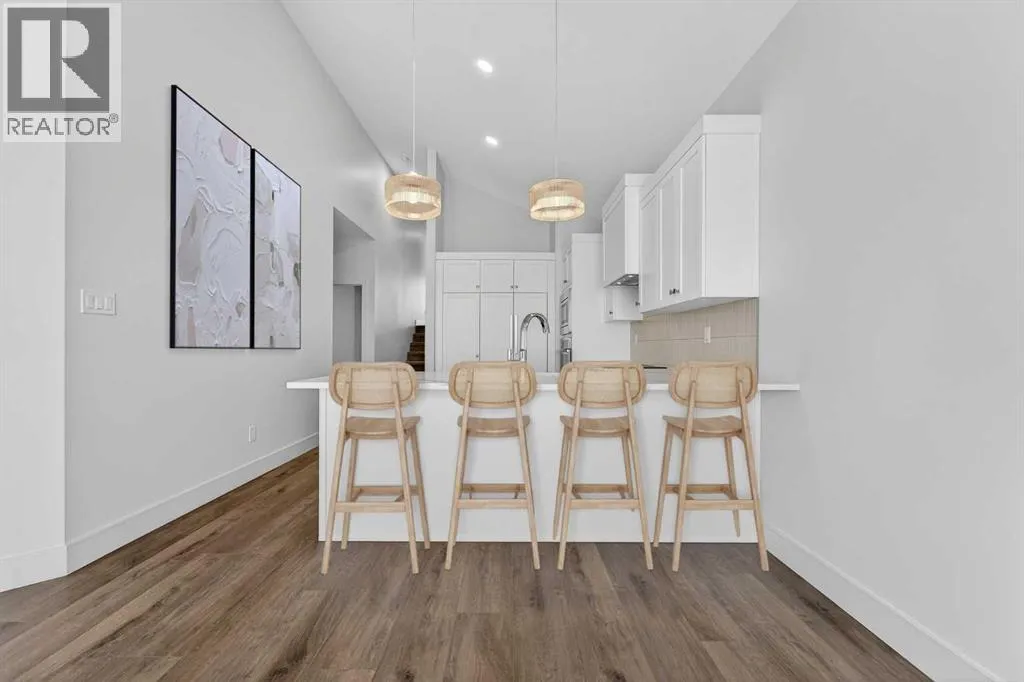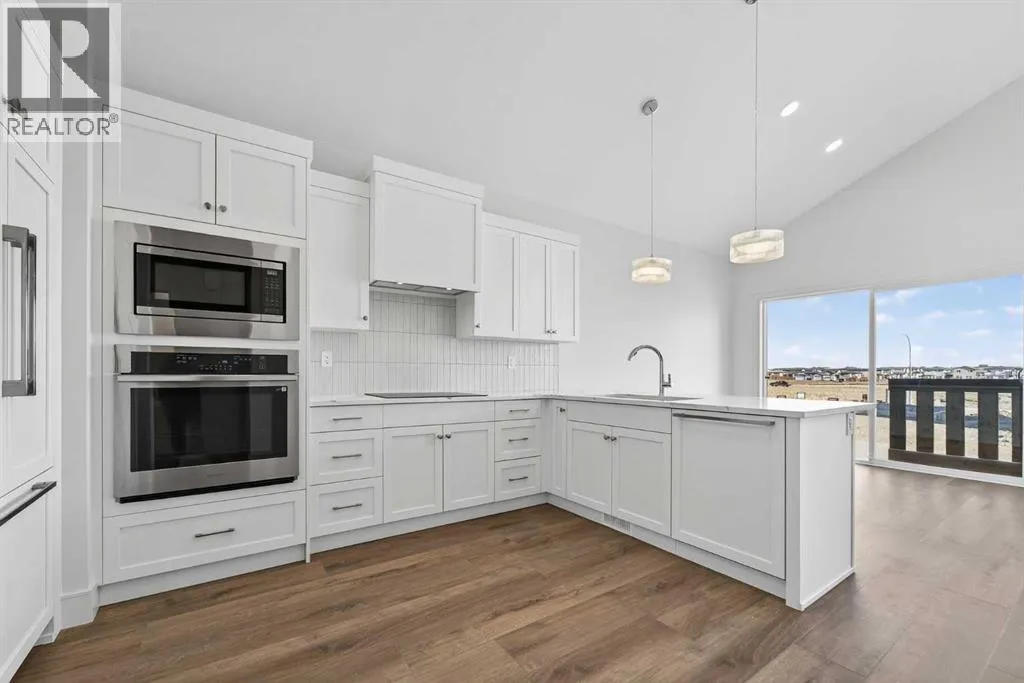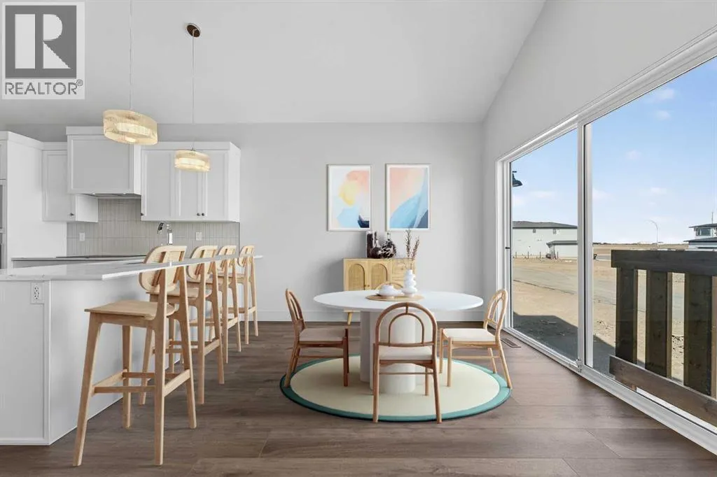 Welcome to the Glenbarr bi-level by Stranville Living Master Builder, located in the exciting new community of Blackwolf, just a short two-minute walk from Legacy Park â and when I say close, I mean you can grab your skates or pickleball paddle and be there in no time. Legacy Park truly is one of the best outdoor spaces in Lethbridge, featuring an outdoor skating rink, pickleball and basketball courts, a skate park, spray park, and beautiful walking paths that wrap around the scenic pond. Living here means your weekends practically plan themselves. Step inside and youâre immediately greeted by the soaring vaulted ceilings that make this home feel bright, open, and far larger than youâd expect. The kitchen is a standout and showcases Stranvilleâs signature finish quality, complete with a paneled Fisher & Paykel fridge, paneled dishwasher, sleek induction cooktop, built-in oven and microwave, quartz countertops, slow-close cabinetry, and convenient bar seating. Itâs modern, clean, and thoughtfully designed for both everyday living and entertaining. Just off the kitchen is the dining area, positioned perfectly beside sliding glass doors that lead out to your future deck â an ideal extension of your living space during the warmer months. The adjacent living room features an oversized window that floods the main floor with natural light, creating a warm and inviting atmosphere. This level also includes two generously sized bedrooms along with a well-appointed four-piece bathroom, offering flexibility for family, guests, or a home office setup. Upstairs, youâll find the laundry conveniently located near the private primary retreat. The primary bedroom continues the vaulted ceiling design and features another oversized window, enhancing the sense of space and light. The ensuite is finished with dual vanities, a walk-in shower, and an impressive 11-foot-long walk-in closet that provides plenty of storage without compromise. With alley access at the rear and Stranvilleâs ele vated finish standards throughout, this brand-new home delivers the perfect balance of thoughtful design, modern style, and an unbeatable location in one of Lethbridgeâs most recreation-focused communities. This home is virtually staged. (id:27476)