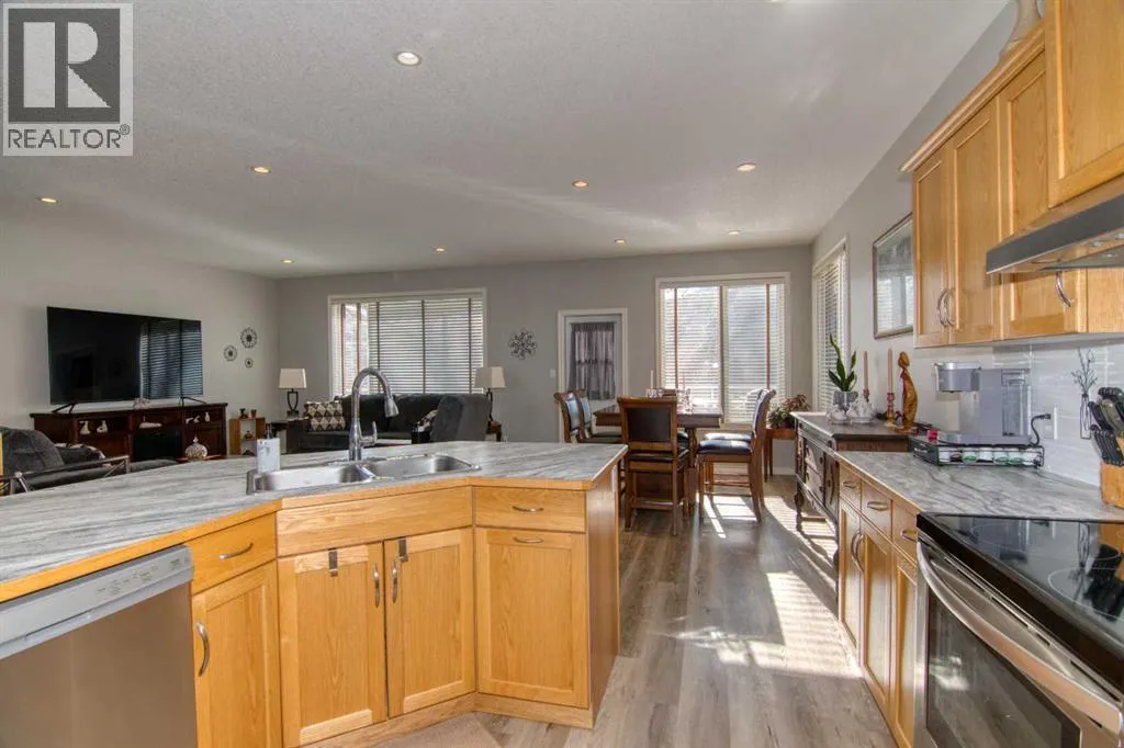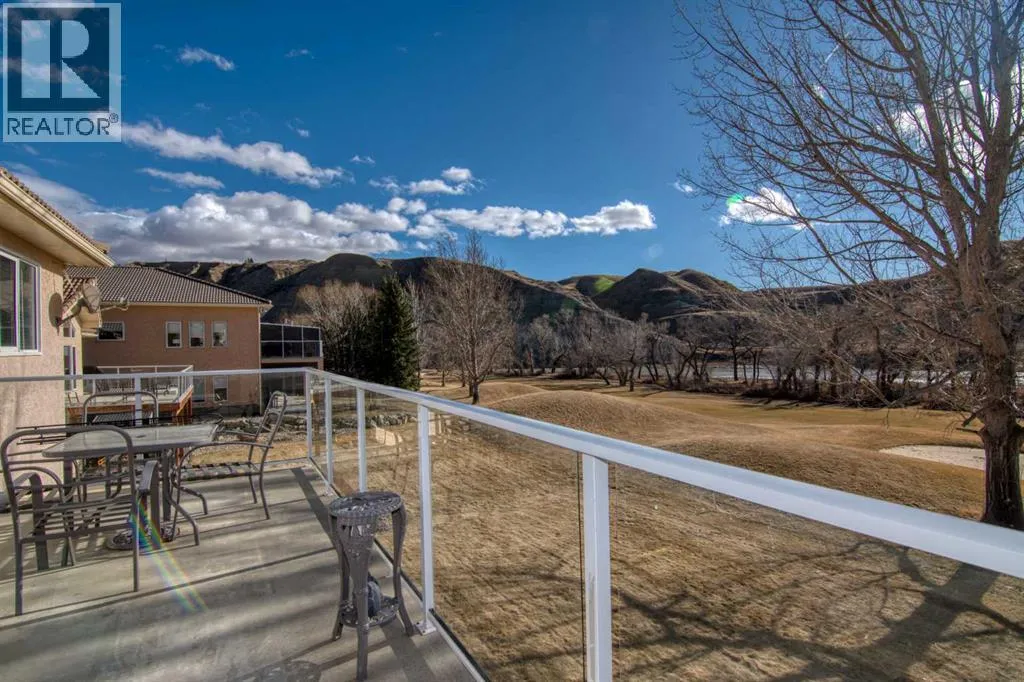 Perfectly positioned backing onto the 13th green, this beautifully maintained bungalow offers breathtaking views of the fairway, the Oldman River, and Lethbridgeâs iconic coulees. Enjoy maintenance-free living in one of the cityâs most sought-after golf course communities, complete with monthly HOA convenience. The main floor features a bright, open-concept design ideal for both everyday living and entertaining. The spacious kitchen flows seamlessly into the dining and living areas, creating an inviting atmosphere highlighted by large windows that capture the incredible scenery. Step out onto the expansive deck overlooking the 13th fairway â the perfect spot for morning coffee or to unwind in the evening. The primary bedroom retreat includes a 4-piece ensuite complete with a relaxing jetted tub. A second bedroom AND dedicated office space provide flexibility for guests or those working from home. Downstairs, youâll find an illegal suite offering excellent opportunits for extended family or potential revenue. The lower level includes a large kitchen, cozy living room with gas fireplace, two bedrooms, in-suite laundry, and a walkout to a covered patio â all with continued views of the beautifully landscaped golf course setting. Recent updates provide peace of mind, including freshly painted main level, laminate flooring, appliances (3 years old), serviced furnace, central A/C, and central vacuum, all in good working order. Paradise Canyon Golf Resort Memberships can be purchased to enjoy the use of the fitness facilities. If youâve been dreaming of serene views, golf course living, and low-maintenance convenience â this is your opportunity. (id:27476)
