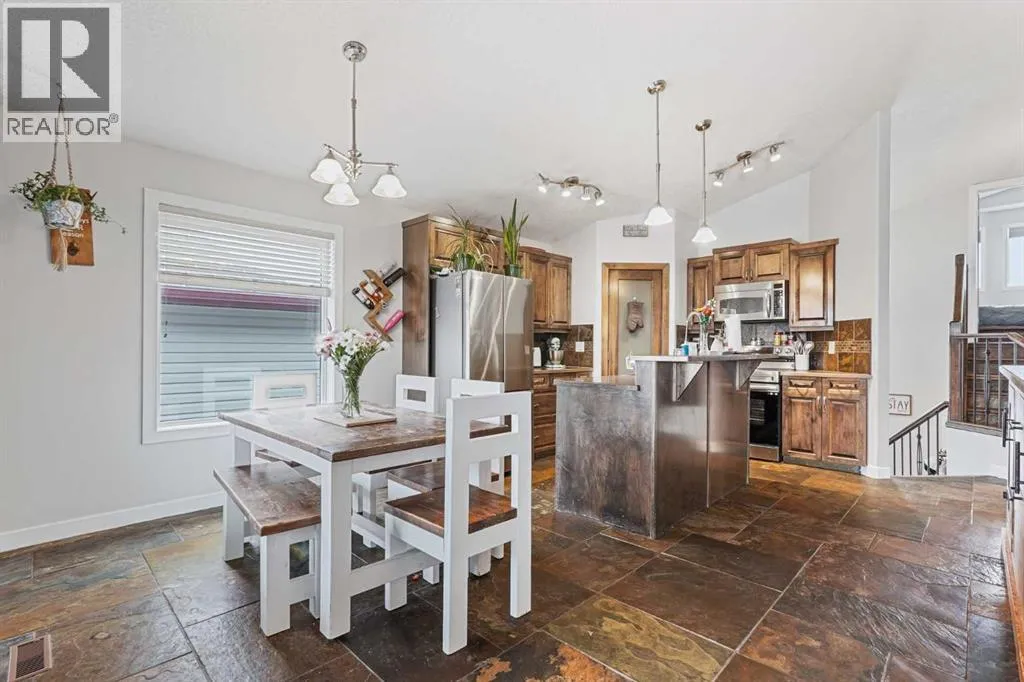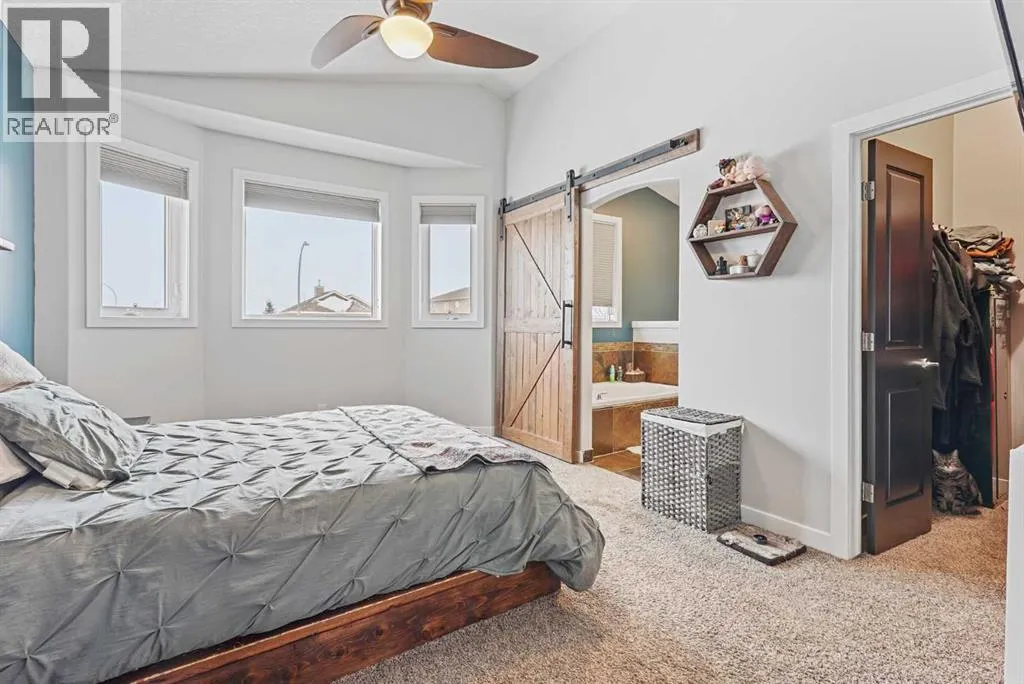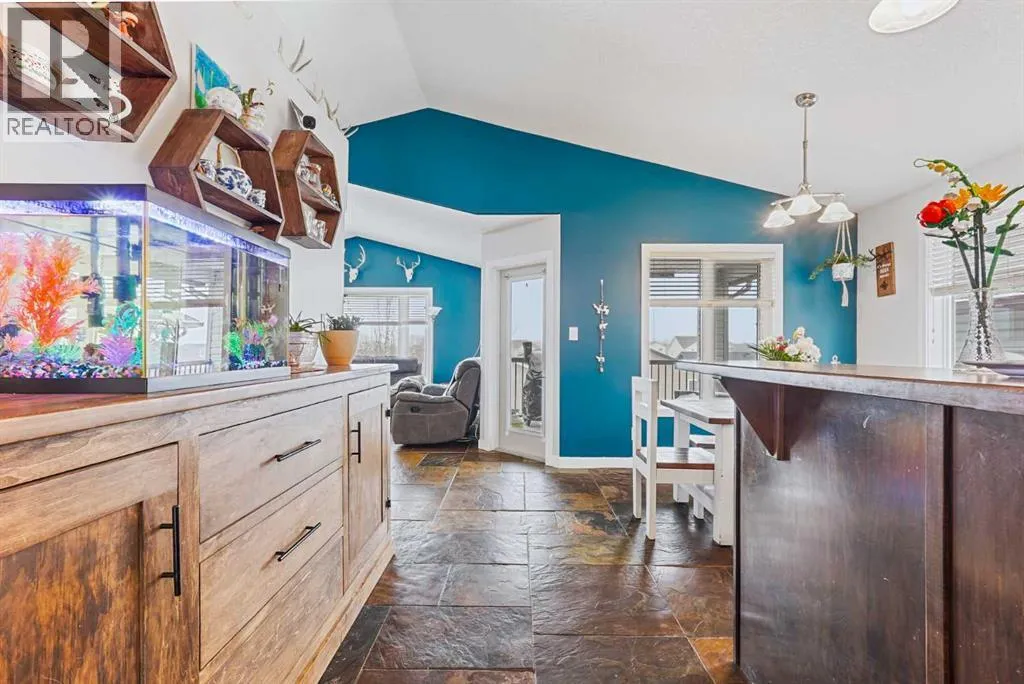This modified bi-level home offers a balanced layout that prioritizes both natural light and personal privacy. The main floor features airy vaulted ceilings and durable slate flooring that runs through the primary living areas, anchored by large windows that bring in sun throughout the day. A standout feature of the floor plan is the master suite, which is positioned privately above the double attached garage and includes its own four-piece ensuite. Two additional bedrooms and a second full bathroom complete the main level, providing plenty of space for family or guests.The home continues to impress in the bright walkout basement, which leads directly to a recently landscaped backyard. This lower level adds a fourth bedroom, a beautiful three-piece bathroom, and a dedicated office space perfect for a quiet work-from-home setup. With a double attached garage and a functional, uncrowded design, this home offers a practical and inviting environment both inside and out. Situated in a quiet neighborhood, this home is just a short walk from a local park and within easy reach of nearby shopping an d amenities. This location offers a perfect balance of community convenience and a peaceful residential feel. (id:27476)