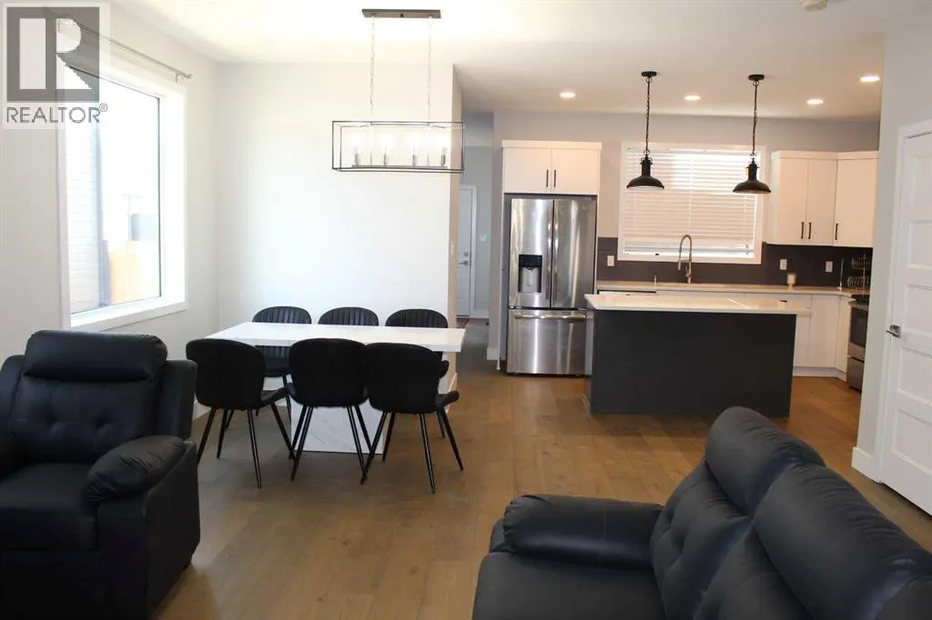 Stunning, one-of-a-kind new build thoughtfully designed for modern living! This beautifully crafted home showcases an attractive front elevation with a rear attached garage and sits on a generous corner lot. Inside, youâll find a bright open-concept layout filled with natural light from oversized windows. The contemporary kitchen features quartz countertops and a large islandâperfect for casual mornings or entertaining guests.Step out from the kitchen onto a private deck tucked between the garage and main floor, offering a cozy outdoor spaceâideal for relaxing or hosting family and friends.Upstairs offers three spacious bedrooms, including a primary retreat complete with a walk-in closet and stylish ensuite. A versatile bonus room provides the perfect space for a kidsâ play area, home office, or evening lounge. Convenient upper-floor laundry adds everyday ease.The expansive corner lot provides plenty of outdoor room for play and entertaining. This exceptional home blends comfort, style, and functionalityâtruly a must-see! (id:27476)