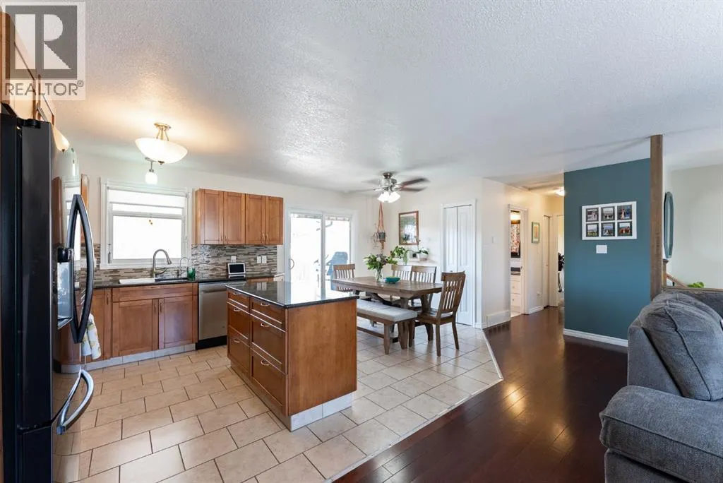 Bright, beautifully renovated, and move-in ready this open-concept bi-level in West Lethbridge checks all the boxes. Fresh paint throughout (including trim), newer vinyl windows, brand new blinds on every window, and a completely renovated front entry with a new door, new tile, and new railings; it truly brightens your day the moment you walk through it.The kitchen shines with stone counters, newer appliances including a brand new oven, plus a reverse osmosis water tap for fresh, clean drinking water. Upstairs, the bathroom features upgraded tub and shower fixtures, while downstairs, the basement bedroom has been completely refreshed with new carpet, updated lighting, and elegant wainscoting. This home offers peace of mind with a HE furnace, a 3-year-old hot water tank, attic exhaust fans, and the east-facing shingles were recently redone.Step outside to a fully landscaped yard featuring underground sprinklers front and back, solar fence lighting, an apple tree, and a white raspberry bush. Enjoy the beautiful deck next to a fully functional hot tub - this home is truly perfect for relaxing, entertaining, or just making memories with loved ones. Additional wire fencing has been added below the wooden fencing to keep those lovely diggers in YOUR yard. Nestled in a quiet nook of the Westside with wonderful neighbours, this is a home you can truly settle into and enjoy from day one. (id:27476)