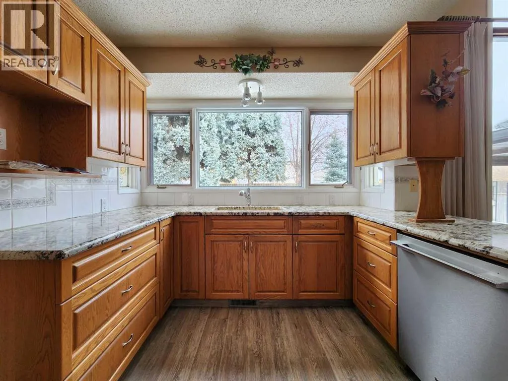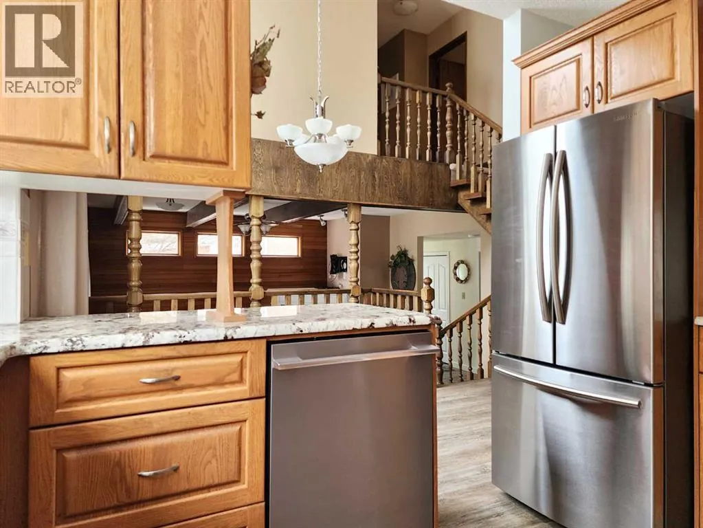 Welcome to this well-maintained 4-level split in the highly desirable Redwood neighbourhood! Offering a double attached garage plus convenient rear RV parking, this versatile home features 2 bedrooms with potential for 2 additional bedrooms in the lower basementâperfect for growing families or those needing extra space. Youâll appreciate the thoughtful layout with 3 bathrooms, including a shower at the entry to the sauna (sauna sold as is). The inviting sunken living area is highlighted by a cozy gas fireplace and direct access to the patio, complete with a gas hookupâideal for outdoor entertaining. The home also boasts central A/C, granite countertops, and stainless steel appliances, along with an abundance of closet space and storage throughout. The primary bedroom offers a unique studio/bonus area in addition to a convenient 2-piece ensuite, creating a flexible retreat for work, hobbies, or relaxation. Large, generous windows fill the home with natural light, while the nicely landscaped yard provides a welcoming outdoor setting. Located within walking distance to multiple parks and a convenience store, and offering easy access to 43 Street, Highway 4, and 24 Avenue South, this Redwood gem combines comfort, functionality, and an unbeatable location. (id:27476)