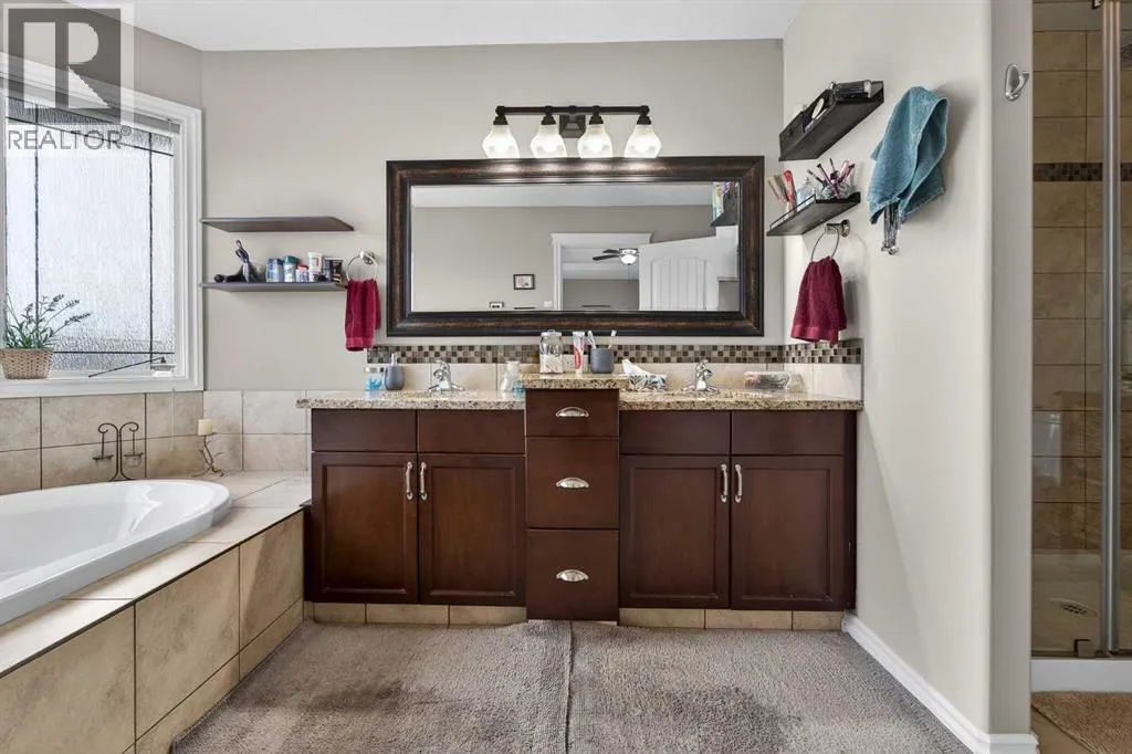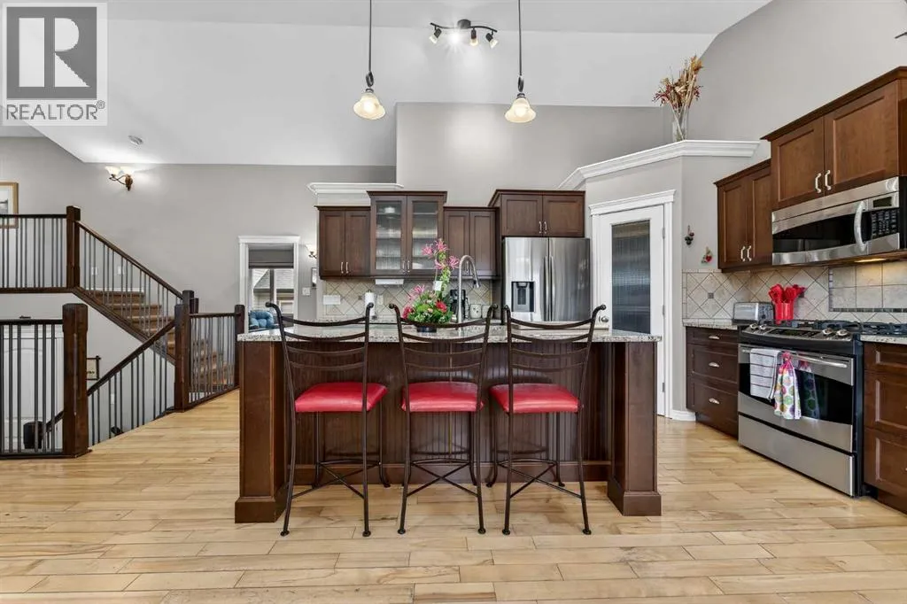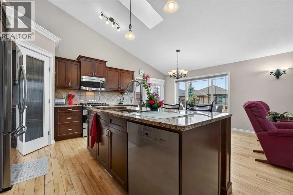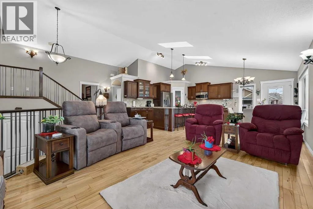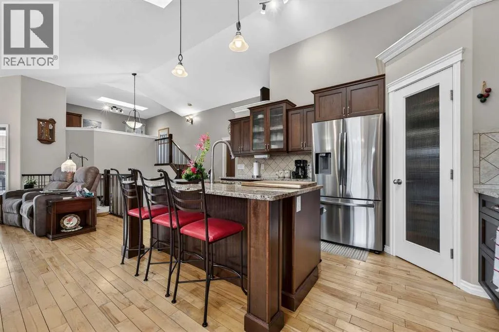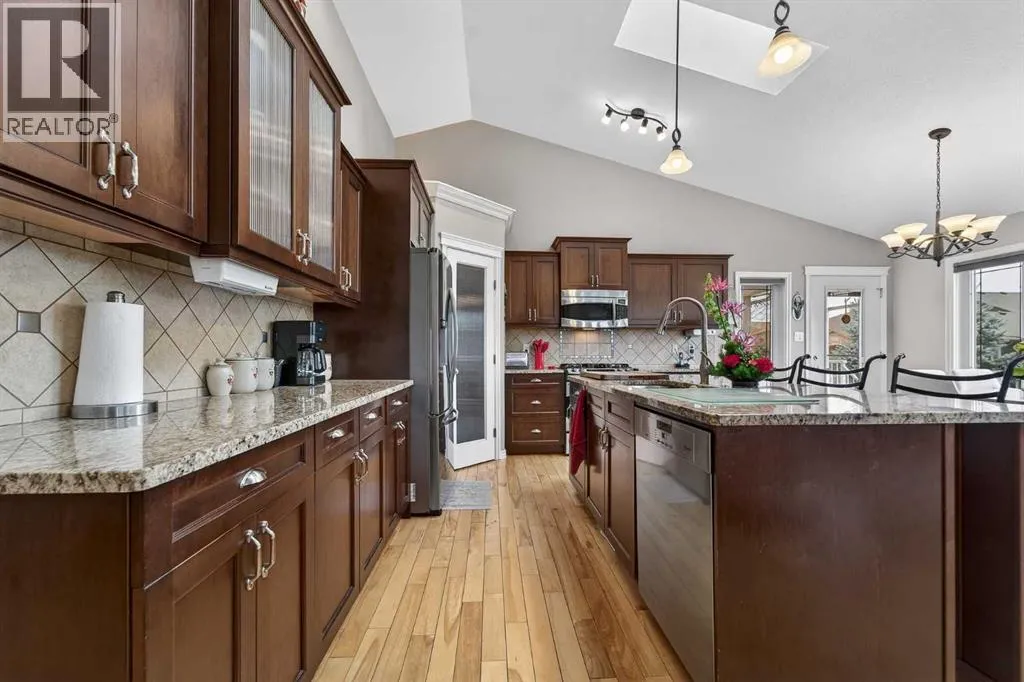 Welcome to this stunning 1,711 sq. ft. bi-level located in the prestigious Sixmile neighbourhood in South Lethbridge â a perfect blend of luxury, space, and functionality. This impressive 5-bedroom, 3-bathroom home offers exceptional design and thoughtful upgrades throughout. The main floor features beautiful hardwood flooring, granite countertops, a gas range, and a cozy gas fireplace that anchors the open-concept living space. The kitchen is both stylish and functional, ideal for entertaining or everyday family life. Just outside, youâll find a covered back deck overlooking a fantastic yard designed for gatherings, complete with pergola and pre-wiring for a hot tub. The primary retreat is truly a showstopper â massive in size with elegant coffered ceilings, recessed lighting, and a spacious walk-in closet with convenient laundry access. The ensuite is spa-inspired, featuring a large jetted soaker tub, dual vanities, and an oversized tiled shower. At the top of the stairs, a dedicated office space just outside the primary bedroom creates the perfect work-from-home setup.Downstairs, 9-foot ceilings enhance the already expansive feel of the fully developed basement, which includes a second gas fireplace, two large bedrooms, and a generous family room â ideal for movie nights or entertaining guests. A walkout closet adds extra storage convenience. Car enthusiasts and hobbyists will appreciate the large garage with plenty of room to tinker, along with additional RV parking. Major updates provide peace of mind, including new shingles (2015 with the remaining side completed in 2025) and brand-new windows and skylights throughout in 2025.Located close to schools, shopping, and numerous restaurant amenities, this exceptional Sixmile home offers upscale living in one of South Lethbridgeâs most sought-after communities.If youâve been waiting for a spacious, upgraded family home in a prime location â this is it. (id:27476)