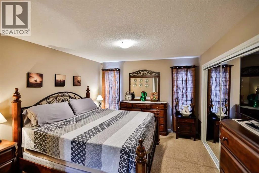 Welcome to this well-maintained bi-level home located in a desirable Northside neighborhood, close to schools, parks, and everyday amenities.This 4 bedroom, 3 bathroom home offers a functional and spacious layout with 2 bedrooms up and 2 down, making it ideal for families or those needing extra space for guests or a home office. The main level features vaulted ceilings and an open floorplan that creates a bright and inviting living space. The living room is centered around a cozy gas fireplace, perfect for relaxing in the evenings.The kitchen offers plenty of workspace with oak cabinetry, laminate countertops, a corner pantry, and an island with sink and dishwasher for added convenience. The newer smoked stainless steel appliances add a modern touch and complete the space nicely.The primary bedroom is generously sized and includes an ensuite with jetted tub, and large mirrored closet. A second bedroom and full bathroom complete the main level.Downstairs, the fully finished basement expands the living space with a large family room featuring a second gas fireplace, two additional bedrooms, a full bathroom, and a laundry room.Additional features include a double attached garage, low-maintenance rock landscaping in the front yard, and a fully fenced yard with back lane access. The backyard includes a deck and pergola, creating a great space to enjoy the outdoors.A well cared for home in a convenient location â perfect for those looking for space, comfort, and a practical layout. (id:27476)