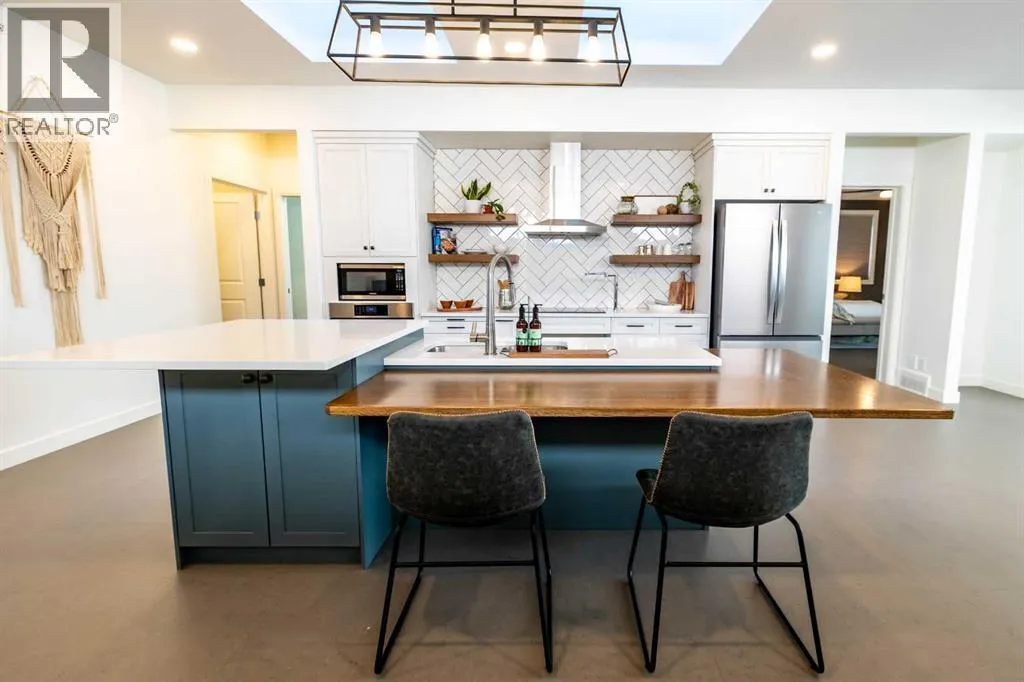 This exceptional bungalow custom-built by Van Arbor Homes, showcases true pride of ownership. Built in 2020 and fully developed, this 1,760 sq ft home was thoughtfully designed to be completely barrier-free and wheelchair accessible while offering the elegance and comfort of a high-end executive residence. Ideally located on a quiet cul-de-sac in the desirable south-side community of Gateway Mews, this is a rare opportunity to own a home that seamlessly blends luxury, function, and future-proof living. A no-step entry welcomes you into a bright, spacious foyer and an open-concept layout featuring wide hallways, expansive rooms, 9-foot ceilings, and three skylights with remote-controlled blinds that flood the home with natural light. The stunning chefâs kitchen is equipped with quartz countertops, a large eat-up island, premium appliances, a convection cooktop with pot filler, and a built-in side-opening oven for effortless access. The living room offers a generous entertaining space highlighted by a cozy gas fireplace. The main-floor primary suite is a true retreat, featuring custom closets with wheelchair-height pull-downs and a ceiling-mounted lift system extending into the luxurious 4-piece ensuite. Here youâll find a roll-in/walk-in shower, jetted therapy tub designed to retain warmth, and elegant herringbone tile accents. Also on the main floor are a guest powder room, convenient laundry, and access to the elevator that connects both levels. The fully developed basement is reinforced with piles and includes two large bedrooms, a full 4-piece bathroom, a spacious family room, plus generous storage and utility areas. This home is packed with premium upgrades including commercial-grade flooring, fire-suppression system throughout, air conditioning, backup generator, and full smart-home integration for lighting, blinds, and exterior doors - all controllable from your smartphone.Outside, enjoy the covered back deck and fully accessible yard with gas hookups for a BBQ or fire table, plus wheelchair ramps leading to both the paved back alley and side gate. The heated double attached garage features hot and cold water with a wash station, perfect for cleaning wheelchair wheels, pets, or muddy boots before entering the home.Whether you require full accessibility now or are planning for âaging in place,â this remarkable home offers peace of mind, comfort, and long-term livability in one beautifully designed package. A truly rare and special property. (id:27476)