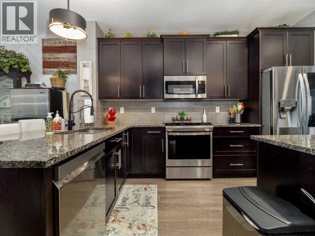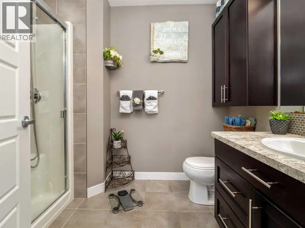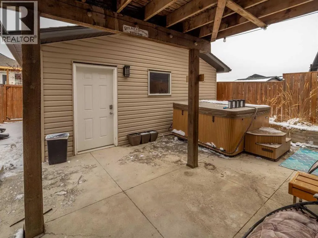 Nice two storey home in Copperwood with double detached garage and walk-out basement. Welcoming enclosed front yard, porch with room for seating, and front entry with closet. Main floor features open plan with 9 foot ceilings and laminate floors. Living room has large windows for plenty of light and has a painted barn wood feature wall. Kitchen is a good size with granite counters, island, prep bar area, plenty of cupboards, and a pantry. Dining room is also a good size with door to deck out back. There is also a 2 piece bathroom on this level and a rear closet that is currently being used as a second pantry. Upper level houses 3 bedrooms including primary bedroom with vaulted ceiling, large walk-in closet, and 3 piece ensuite featuring full length walk-in shower. There is also another full bathroom on this level and a laundry closet. The 2nd and 3rd bedrooms have built-in bookshelves and hinged closet doors. Walk-Out basement is undeveloped and awaits your finishes. There is a bathroom that is roughed in. Backyard is fenced and has a covered patio under the deck where the basement entry is. Rear double garage for your vehicles. Copperwood features great parks, playgrounds, walking paths, an elementary school, shopping amenities, restaurants, and is adjacent to one of the largest YMCA's in Western Canada with gym, pool, lazy river, surf spot, waterslide, and running track. There are also twin ice arenas and 10 curling sheets at the Cavendish Farms Centre right beside the YMCA. Two high schools are also close by! Move in and enjoy a great life in West Lethbridge! (id:27476)