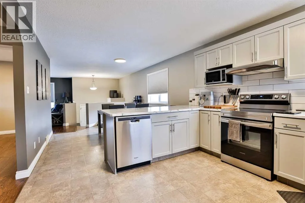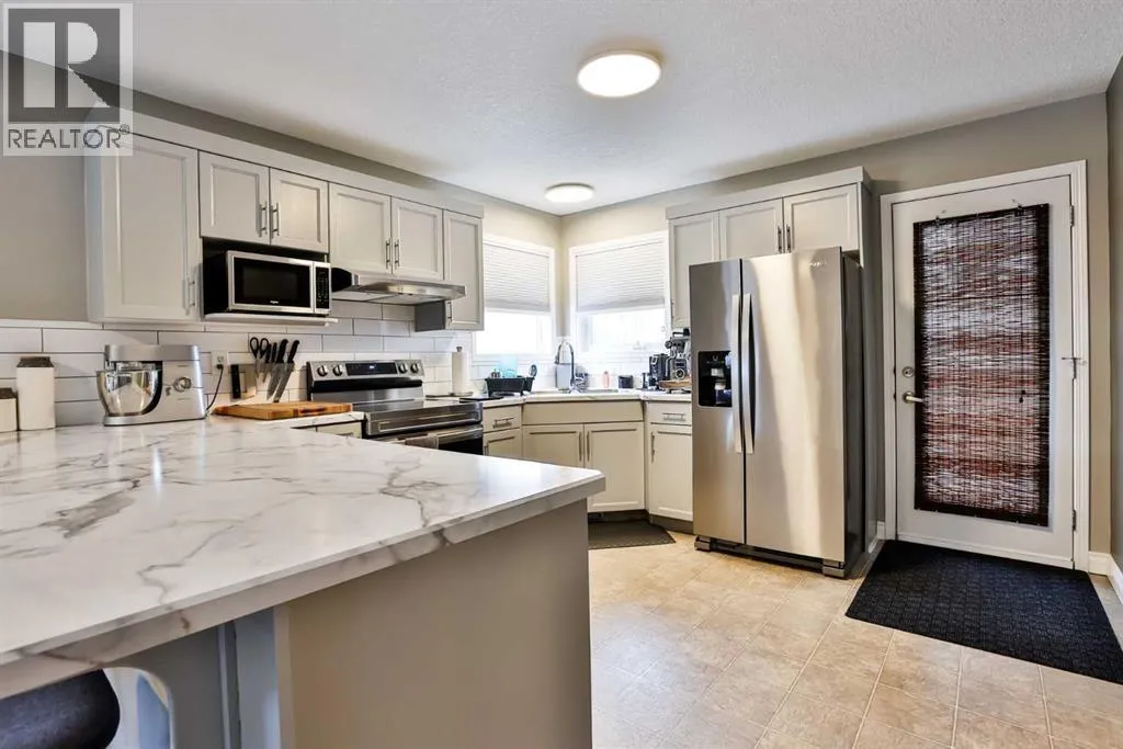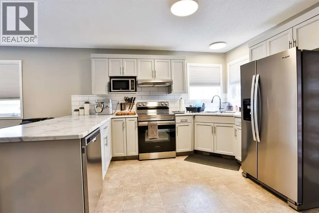 This meticulously maintained home offers exceptional curb appeal and pride of ownership throughout. The thoughtfully designed landscaping creates a welcoming first impression, while inside youâre greeted by an open entry that seamlessly connects the two levels. Tastefully updated with modern colours, the main floor features a bright and spacious living room filled with natural light, flowing into a generous dining area that comfortably accommodates a table for six. The well-appointed kitchen is designed for both function and connection, offering abundant counter space and ample cabinetry to meet all your storage needs. The primary bedroom easily fits a king-size bed and includes a spacious closet, while three additional bedrooms provide room for a growing family. The lower-level family room is ideal for movie nights or entertaining friends. Outside, enjoy a fully fenced and landscaped yard complete with a rear deck leading to a lower patioâperfect for relaxing even on breezier days. Added privacy from the west neighbour is provided by a walking path between the properties. A wonderful starter home youâll be proud to call your own. Price includes all appliances and window coverings. (id:27476)