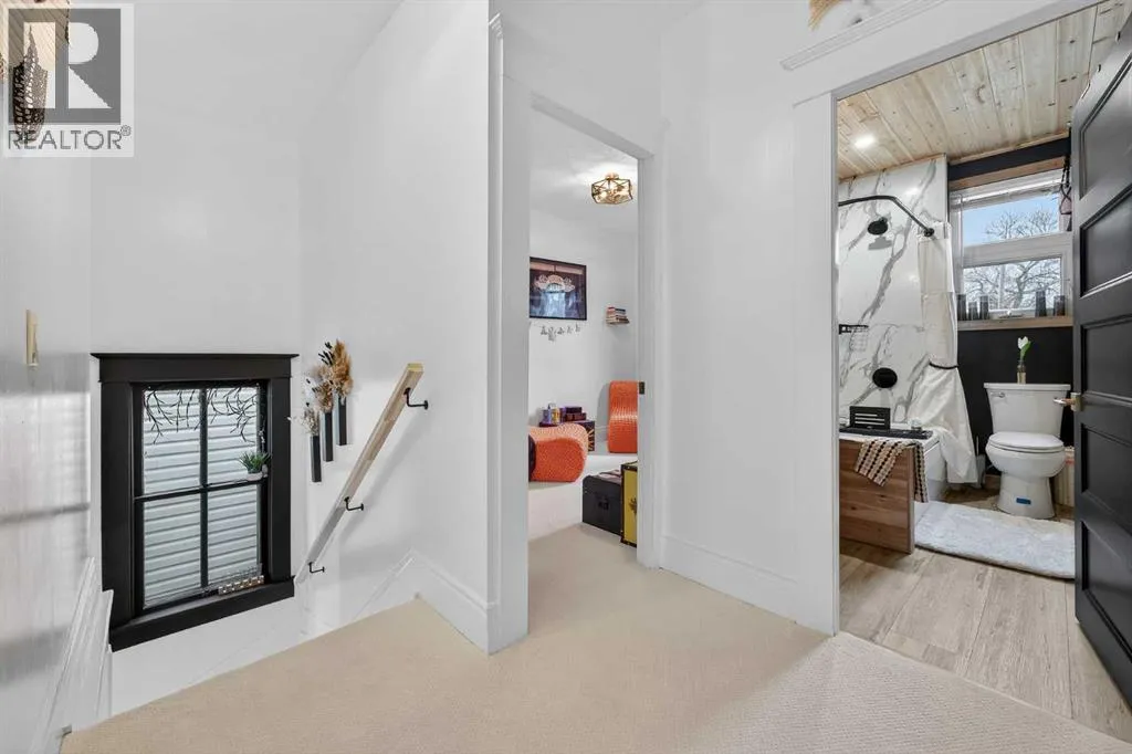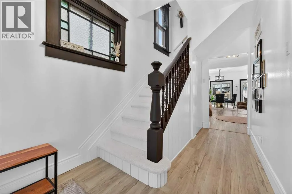 Located in the heart of London Road, just steps from tree lined streets, parks, and within walking distance to downtown shops, restaurants, and everyday amenities, this fully renovated character home offers a rare combination of historic charm and modern design. Originally built in 1910, the home has been thoughtfully updated from top to bottom while still maintaining the character that makes this neighbourhood so desirable. The main floor features a bright and open layout where the living room flows naturally into the dining area and kitchen, creating a comfortable space for both everyday living and entertaining. The kitchen offers sleek black cabinetry, open shelving, high end appliances, and a large island with seating, all tied together with modern finishes and clean design. Two sliding patio doors extend the living space outdoors onto a full width composite deck, offering plenty of room for lounging, dining, and enjoying the backyard. Also on the main floor is a unique and highly functional space with its own exterior entrance, making it ideal for a home office, studio, or small home based business. This room could also function as a main floor bedroom, with a three piece bathroom and laundry located directly beside it, adding to the flexibility of the layout. Upstairs, youâll find a spacious primary bedroom complete with a large walk in closet, along with two additional bedrooms and a full four piece bathroom. The upper level continues the same balance of character and modern updates, creating a cohesive feel throughout the home. Throughout the property, black accents, feature walls, and updated finishes bring a modern edge while still respecting the original design. The exterior has also been fully redone with updated siding, windows, and a welcoming front porch that adds to the homeâs curb appeal. Situated on a quiet street in one of Lethbridgeâs most established neighbourhoods, this home offers walkability, character, and a level of flexibility that is rare ly available, all within minutes of the downtown core. (id:27476)