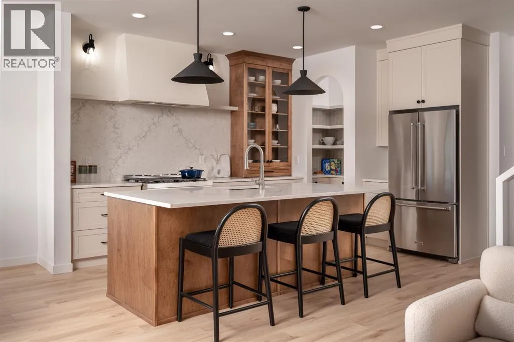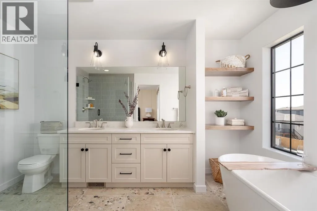 Avonlea show home for sale. Take advantage of all the upgrades and inclusions. Hereâs your chance to own a stunning 3 bedroom, 2.5 bathroom show home full of style and thoughtful details. Featuring upgraded beige James Hardie accent siding and elegant beige fieldstone accents, plus custom painted MDF and stained maple cabinetry, this home is designed to impress. Premium touches include Kohler fixtures, white quartz countertops with soft grey veining, a custom ensuite shower tile pattern, and a kitchen with a plastered hoodfan and spice shelf. Bathrooms and laundry feature beige terrazzo-inspired tile, and stained header details add character to the living room and primary bedroom windows. Bonus features include a spacious deck, Fenced, fully landscaped front and back yard, mudroom, walk in pantry, bonus room, washer and dryer, and air conditioning, painted garage, making this home as functional as it is beautiful. Basement is undeveloped but laid out for future 4th bedroom, bathroom and family room. Great location with walking distance to pond and playground. NHW (id:27476)
