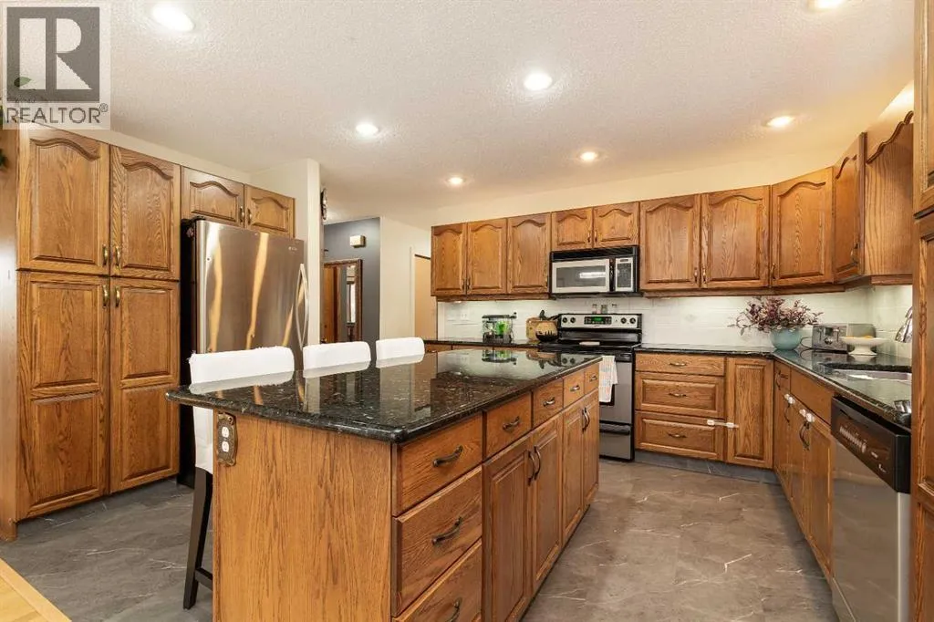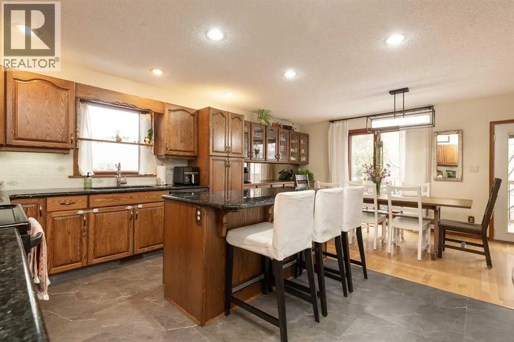 Welcome to 2208 27 Ave S, an exceptionally well-maintained 1,314 sq.ft. bi-level tucked into a fantastic cul-de-sac location in desirable Tudor Estates. This home blends timeless character with thoughtful modern updates, featuring original hardwood throughout the main floor alongside vinyl plank flooring, fully renovated bathrooms, granite kitchen counters, and contemporary paint colours. The main floor offers a semi-open layout with a spacious living room, dining area with built-in buffet cabinetry, and a large kitchen complete with oak cabinetry, stainless steel appliances, a generous island, and plenty of counter and storage space. Youâll also find 3 bedrooms and 1.5 bathrooms, including a convenient 2-piece ensuite. Downstairs, the fully developed basement provides an expansive family room with bar area, 2 additional bedrooms, a full bathroom, laundry, and a utility room with ample storage. Step outside to a newly updated deck off the dining room that wraps around the side and back of the home, overlooking a large, private yard with mature trees and no rear neighbours. Additional highlights include a double attached garage, central A/C, and a recently rebuilt fence. Ideally located just minutes from shopping, restaurants, Lethbridge College, and other south side amenities. (id:27476)