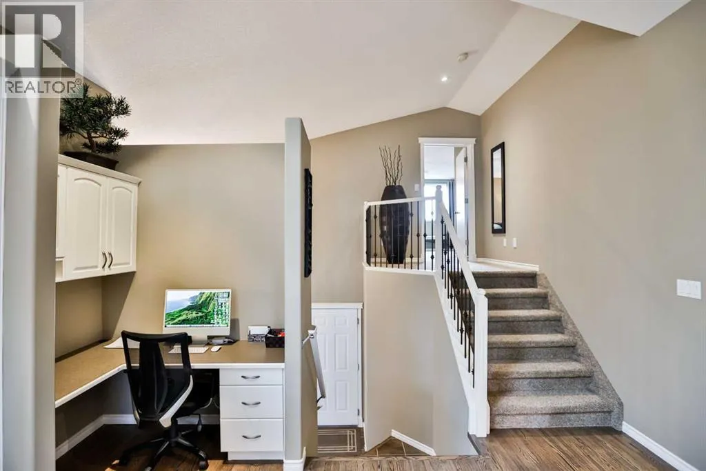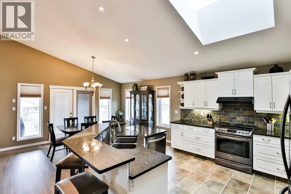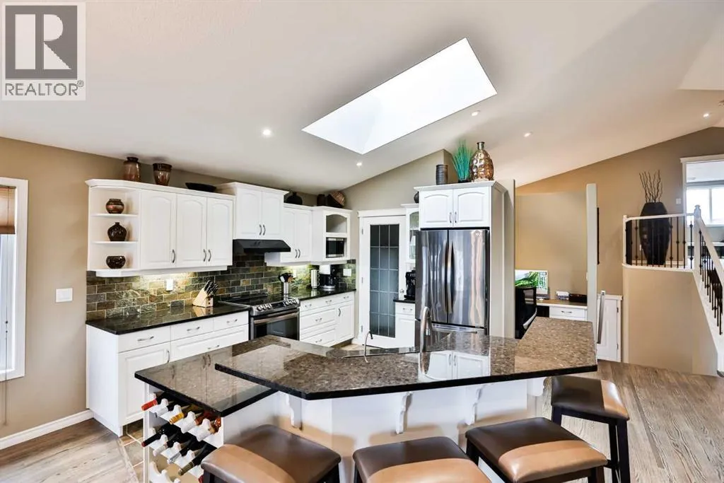 Tucked away in a quiet cul-de-sac in the highly sought-after community of Heritage, this beautifully maintained bi-level walkout offers over 1,700 sq. ft. of thoughtfully designed living space across the main floor and above the garage. Set on a massive lot backing onto serene green space, this property delivers the perfect combination of privacy, comfort, and everyday functionality.Step into a spacious front entry and head up to a warm, inviting living area featuring rich hardwood flooring, a striking three-sided fireplace, and expansive windows that flood the home with natural light. In-floor heating throughout all tiled areasâincluding the basementâadds an extra layer of comfort year-round.The kitchen and dining area were stylishly updated in 2020 with new countertops, appliances, freshly painted cabinetry, modern lighting, and refinished hardwood floorsâblending contemporary updates with timeless charm. A large pantry, built-in desk space, and an impressive 4â x 4â skylight enhance both functionality and brightness.With four generously sized bedrooms, thereâs ample space for family and guests. The private primary retreat above the garage is a true highlight, featuring a spacious walk-in closet and a luxurious ensuite complete with an air tub, steam shower, and additional linen storage. Downstairs, 9-foot ceilings and oversized walkout windows create a bright, open lower level that feels anything but below grade.Outdoor living is equally exceptional, offering a covered patio with durable vinyl decking, stairs to the yard, and a gas line for effortless BBQ setup. The expansive backyard is ideal for entertaining or relaxing, with mature trees for added privacy, rock waterfall feature, underground sprinklers, and plenty of space for a future firepit area.Additional features include a new roof (2020), exposed aggregate driveway, stucco exterior, plush carpeting, window blinds, reverse osmosis system, zoned in-floor heating, an oversized 23â x 25â double attached garage, and a convenient side shed for extra storage.Located in an established neighbourhood known for its mature trees and close proximity to amenities, this exceptional home offers space, style, and a truly unbeatable setting. (id:27476)