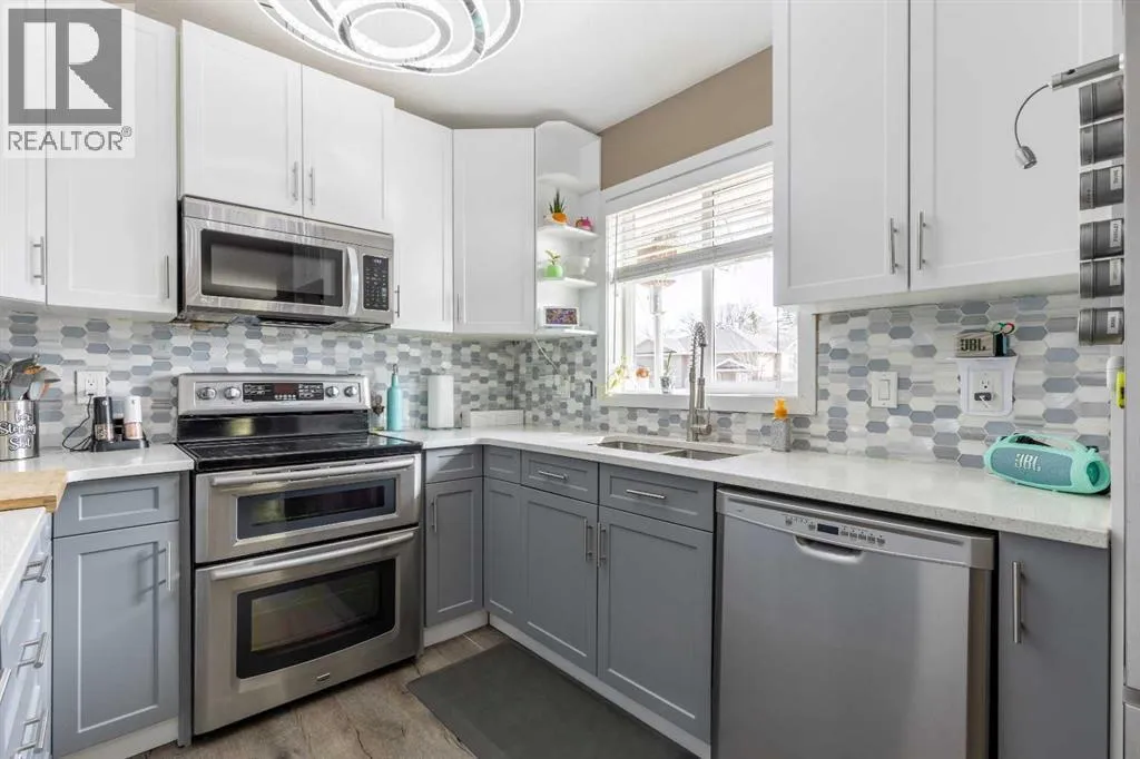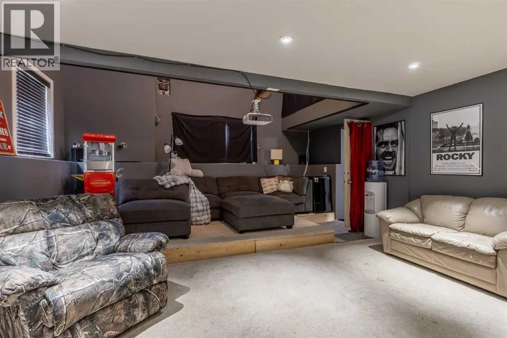 This north side home is anything but your average bungalow! Filled with upgrades and a unique floor plan to boot, this is a tremendous option for those looking to enjoy movie nights at home. With a new furnace and hot water tank, over sized double garage + front parking pad, permanent lighting and a theatre room, there's a lot to love about this home within walking distance to THREE schools! The main floor enjoys a modern kitchen, open entertaining space, 2 bedrooms, 4 piece bathroom, laundry room and a bonus flex space! The basement offers an additional 2 bedrooms, office, media room, rec room and 3 piece bathroom! Thereâs a patio which offers great privacy and a 29 x 25 heated detached garage! (id:27476)