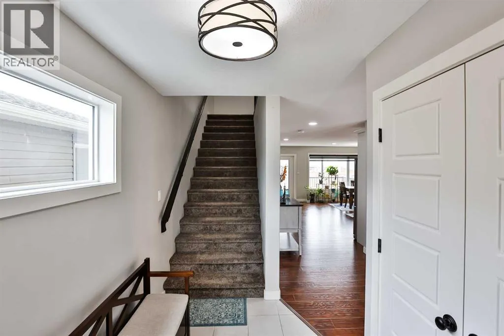 This home is nothing short of immaculate! Offering 2,150 sq. ft. of beautifully finished space across the main and upper level, this property features 3 bedrooms and 2.5 bathrooms, all designed with generous proportions and thoughtful upgrades throughout. As you enter, youâre welcomed by a spacious foyer that leads into a stunning, oversized living room. Six large front-facing windows flood the space with natural light, complemented by pot lighting throughout. A striking teal feature wall with moulding detail adds character and creates a subtle separation from the kitchen and dining areas. Hardwood flooring runs throughout the main floor, tying the space together. The kitchen and dining area are bright and expansive, featuring a large window over the sink, beautiful white maple cabinetry, stainless steel appliances, and dark granite countertops. A large central island provides the perfect space for prep, entertaining, and casual dining. A convenient half bath is tucked just off this area. At the rear of the home, youâll find a large pressure-treated deck with aluminum railing, a 20â x 22â parking pad with gated access, underground sprinklers, and a raised garden bedâperfect for outdoor enjoyment. Upstairs, a wide staircase with upgraded maple spindle railing makes moving and everyday living a breeze. The primary bedroom is located at the back of the home and offers a walk-in closet and a beautifully appointed ensuite featuring double sinks, a soaker tub, and a separate shower. A large window above the tub fills the space with natural light. A spacious hallway separates the primary suite from the additional bedrooms and includes a laundry room with a sink and extra shelving. The two additional bedrooms are located at the front of the home and are both generously sizedâlarge enough to accommodate king-sized beds. A 4-piece bathroom with recently upgraded sliding glass shower doors completes the upper level. The basement is unfinished and offers incredible potentialâan ideal opportunity for a developer or anyone looking to customize additional living space. Additional features and upgrades include a new hot water tank (September 2025), dishwasher replaced in 2020, central vacuum, extra pot lighting, feature walls, front parking pad (22â x 22â), security cameras, air conditioning, window coverings, and Gemstone lightingâperfect for celebrating every season and holiday. This home is exceptionally clean, well cared for, and truly a pleasure to show. You will love living here! Call your favourite REALTOR® today to book your private showing. (id:27476)