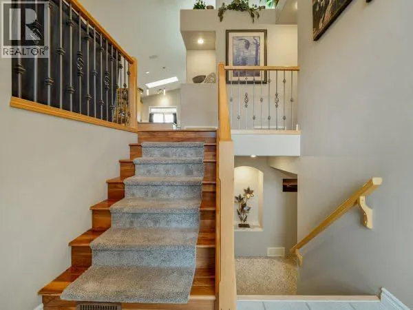 Welcome to this beautifully maintained bi-level home located in the highly desirable Riverstone subdivision. Offering the perfect blend of comfort and functionality, this home is ideal for families and those who love to entertain. Step inside to a bright, open-concept main floor featuring a spacious kitchen, dining, and living area, perfect for gatherings and everyday living. Cozy up with the convenience of a fireplace on both the main floor and lower level. This home offers 4 bedrooms (2 up, 2 down) and 3 bathrooms, including a generous primary suite complete with a 5-piece ensuite. The fully developed lower level features a large family room, 2 more bedrooms and dedicated office space, perfect for working from home or relaxing with family. This home also has a built -in vacuum system and water softener. Enjoy an extra-large, heated rear-attached garage, plus two additional parking spaces for added convenience. The front yard showcases a stunning waterfall feature (professionally maintained annually), while the backyard offers a mature, fully developed space complete with deck storage, perfect for outdoor living. Enjoy your summer nights inside with the air conditioning or on the front verandah or back deck enjoying the sound of the water falls. This move-in ready home offers space, style, and a prime location â donât miss your opportunity to make it yours! Book your private showing today. (id:27476)