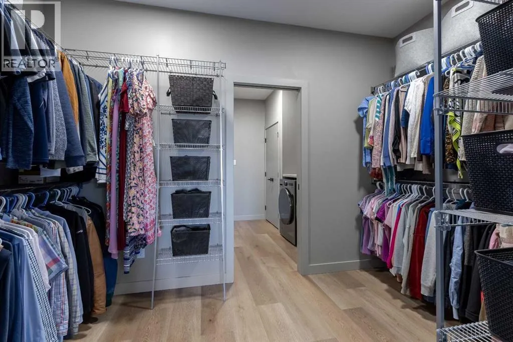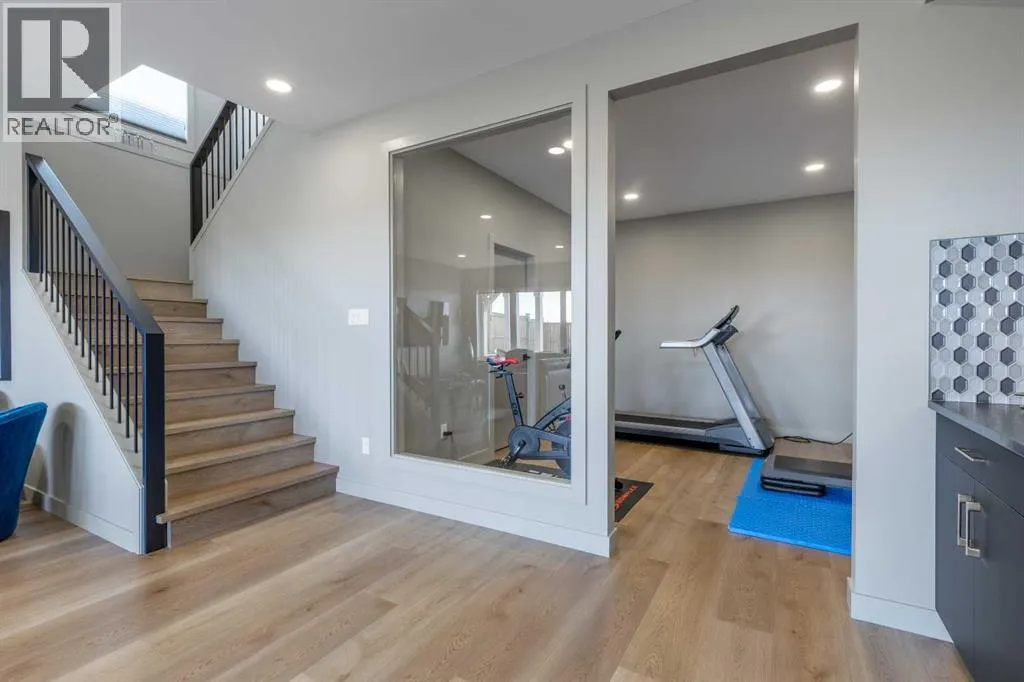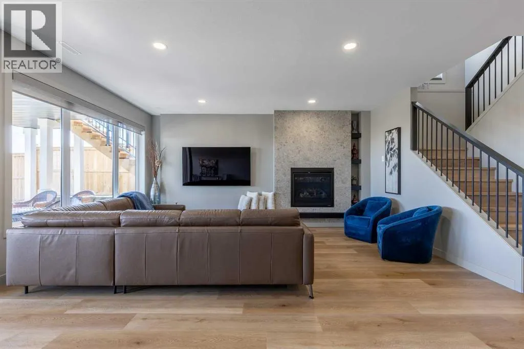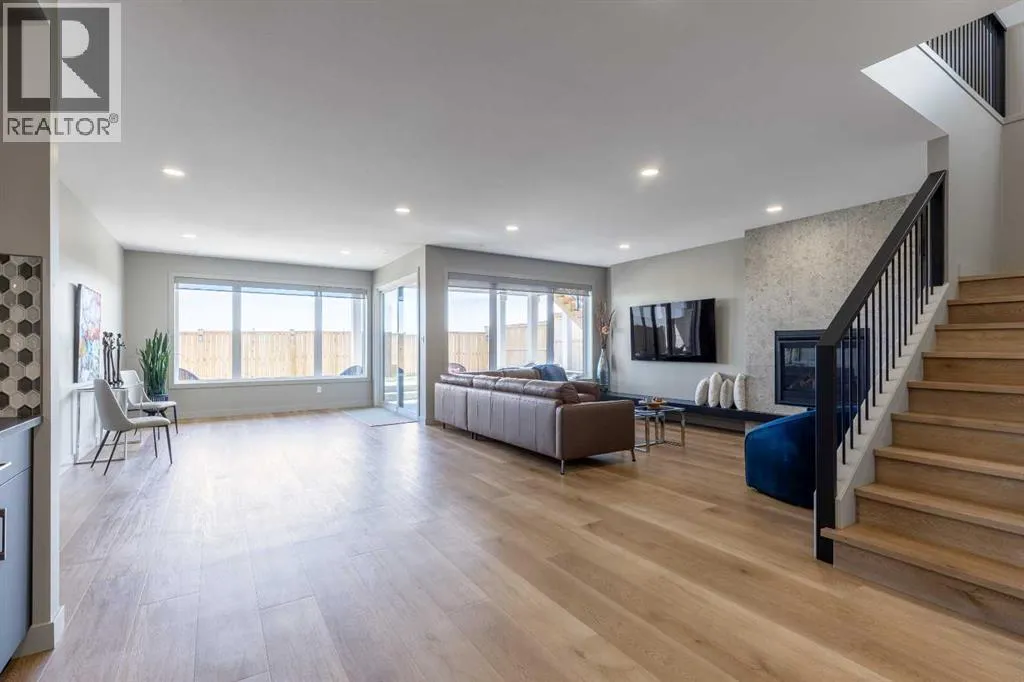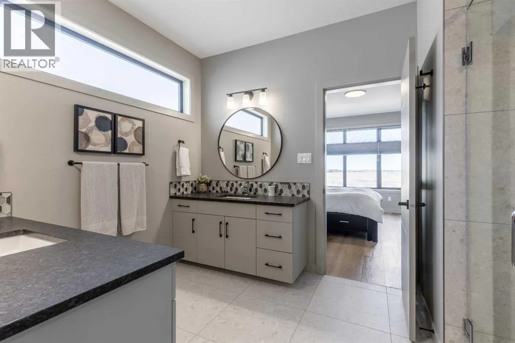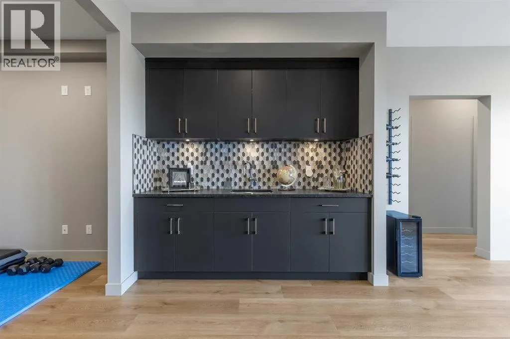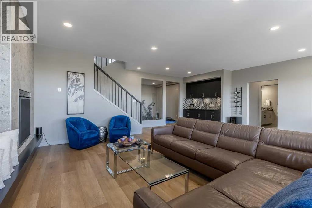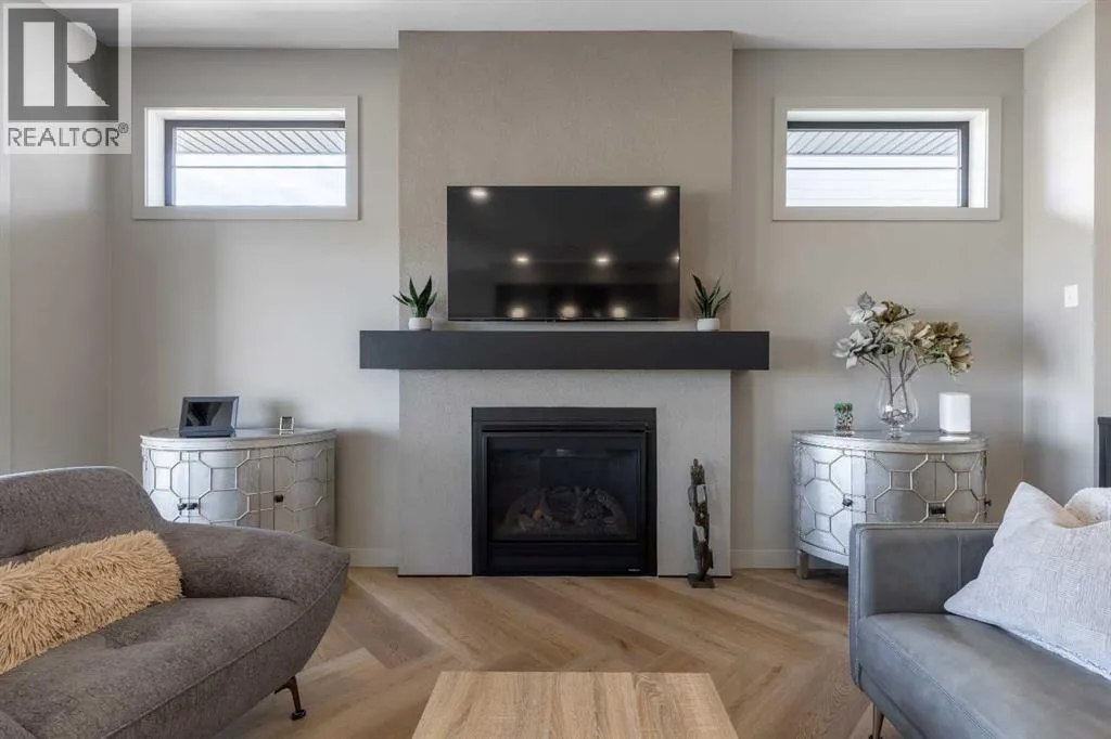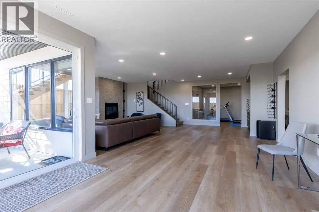 This stunning CUSTOM built bungalow is the executive home, steps away from Canyon Pond that you've been searching for! Loaded with high-end extras and great proximity to walking paths, this home is an ideal option for those looking for a quiet lifestyle with great views! The custom features start from the outside - a covered front entry that welcomes you to the grand entrance with soaring 10' ceilings and direct views to the backyard. There's custom herringbone flooring, a main floor office, open concept living area with gas fireplace, leathered granite counters throughout and the KITCHEN! These appliances are made for those who love to cook: a 6 burner Fulgor Milano Sofia gas cooktop, double oven, 36" professional series fridge, stylish butlers pantry and plentiful storage. The primary suite enjoys its own section of the main floor with beautiful views, a 4 piece ensuite with fully tiled shower with 3 shower heads and a huge walk-in closet that connects to the laundry room. The walk-out basement continues the theme of soaring 9' ceilings, boasts a wet bar, gym area with glass wall, 2 bedrooms that share a 5 piece bathroom (with separate toilet/shower room), stylish gas fireplace and even more storage space! The owners added 2" of foam insulation to the flooring in the basement for extra comfort, there's a dual-zone furnace, custom Hunter Douglas blinds throughout and underground sprinklers with Hunter Hydrawise controlled app! The extra large garage provides abundant space for vehicles (can fit a truck!), storage or projects and it is complete with a utility sink. (id:27476)